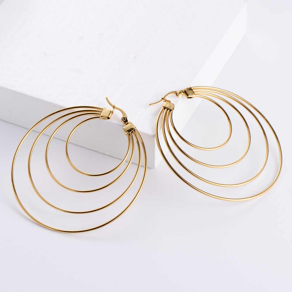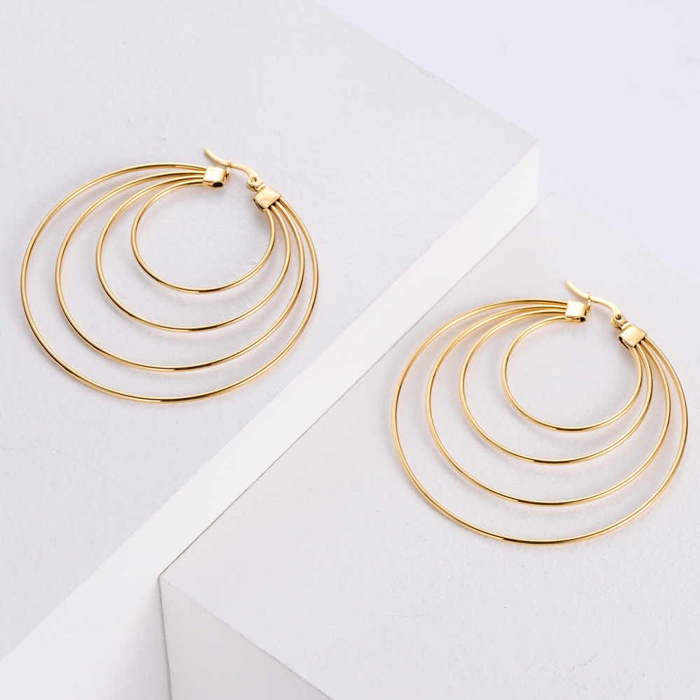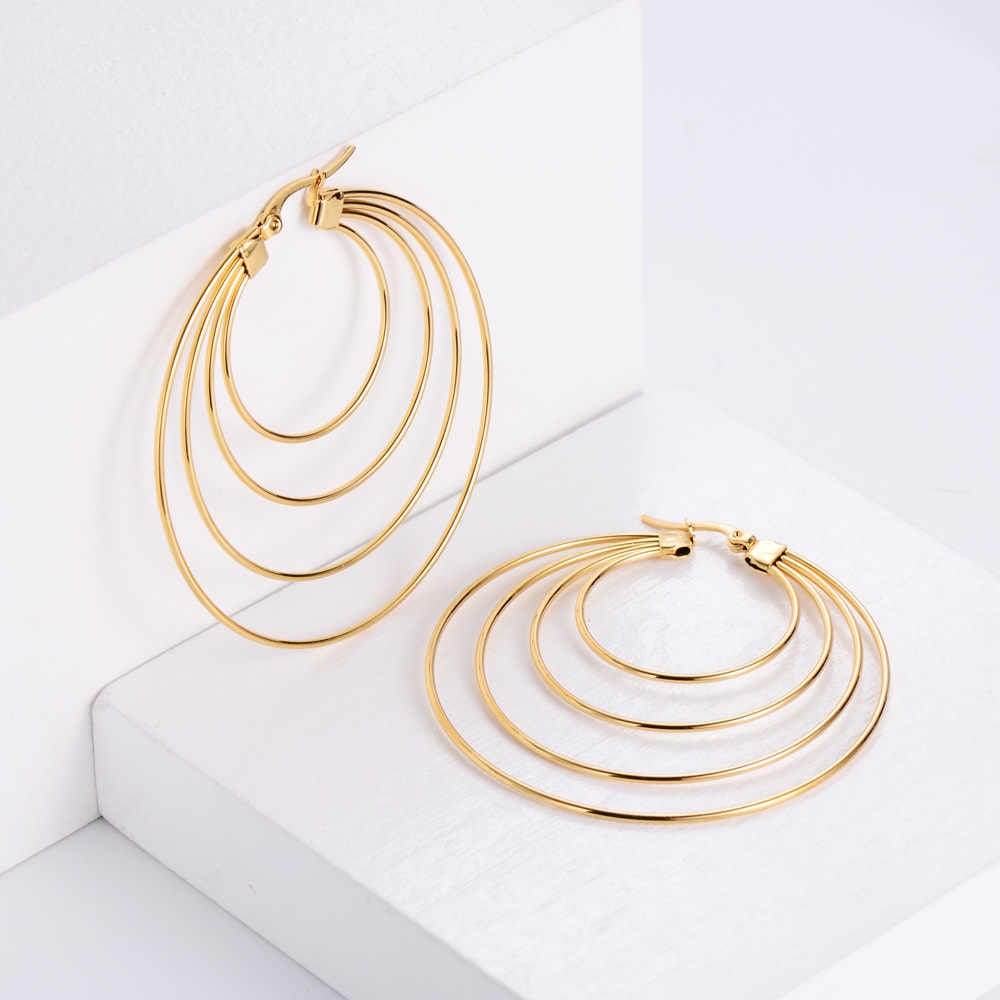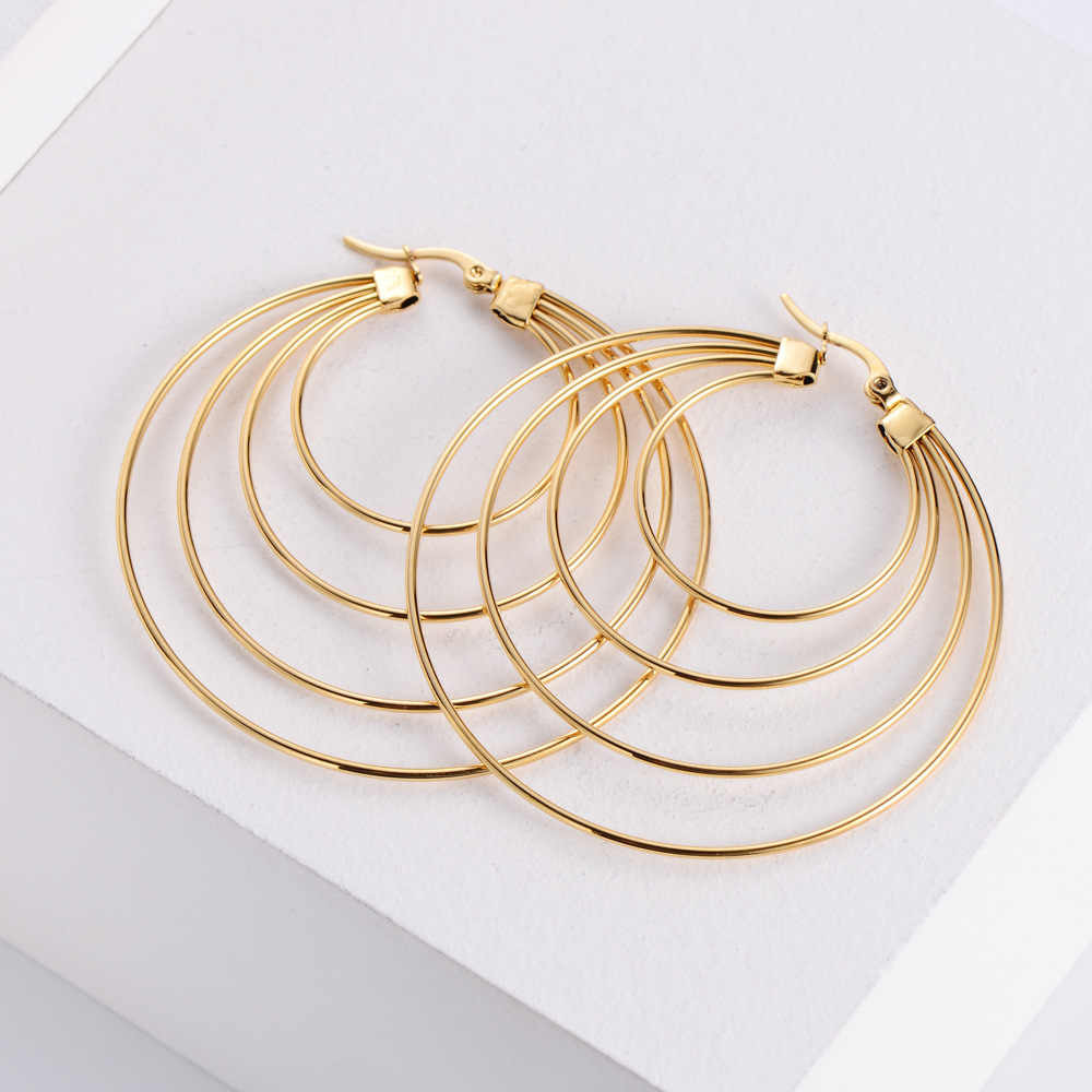 - Make a statement with these elegant multi-circle earrings, featuring a layered design with hoops graduating from small to large.