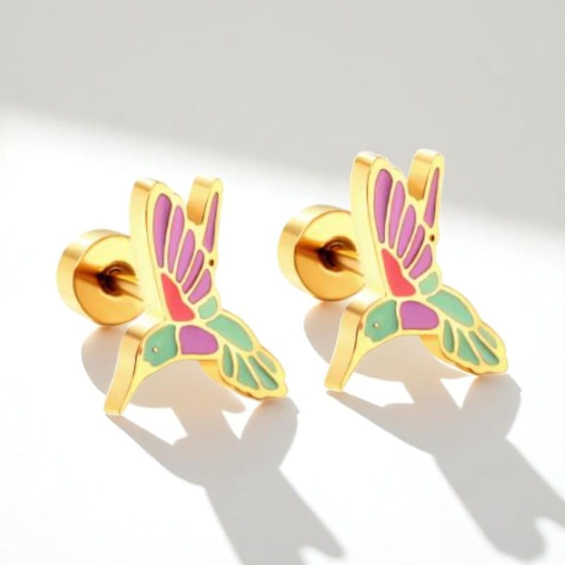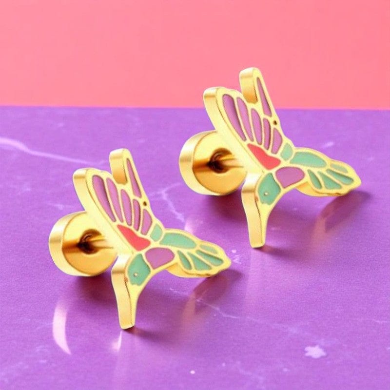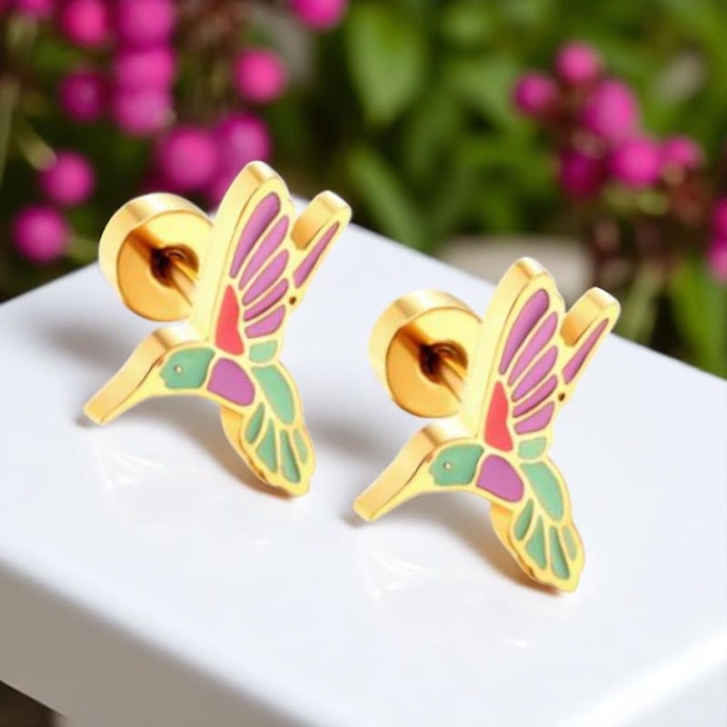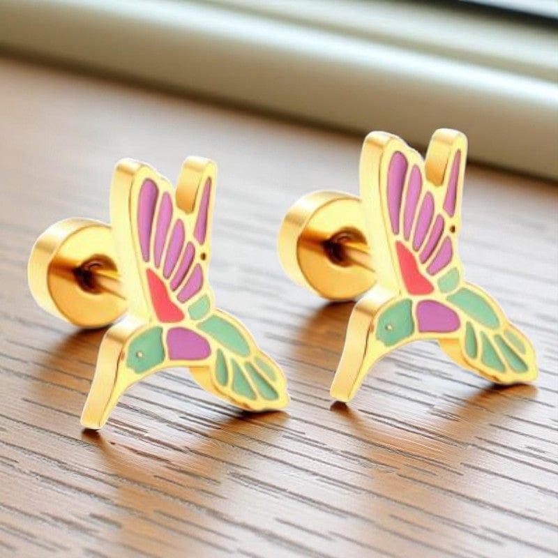 Vibrant Hummingbird Earrings | 18K PVD Gold Plated - For Women | Includes: Earrings