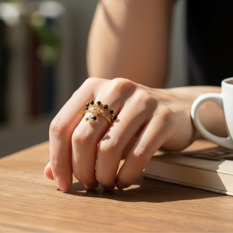 Mystic Designer Adjustable Ring | 18K PVD Gold Plated- For Women | Includes: Ring