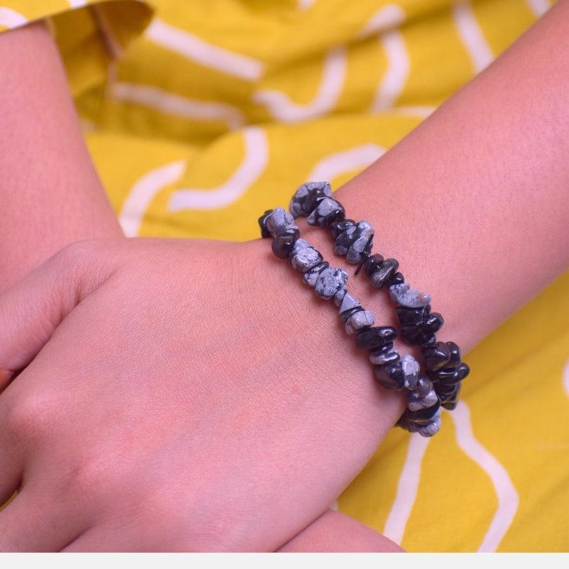 Mystic Flakes Dual Layer Bracelet | Snowflake Obsidian Chips – For Women | Includes: Bracelet