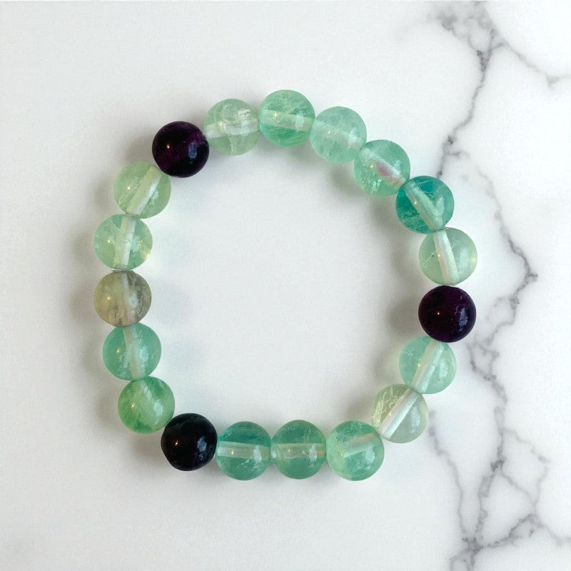 - π« Elegant Set of Two Bracelets β Includes one bracelet made from soft, soothing Purple Kunzite and the other from vibrant, multicolored Fluorite, offering a radiant and graceful aesthetic.