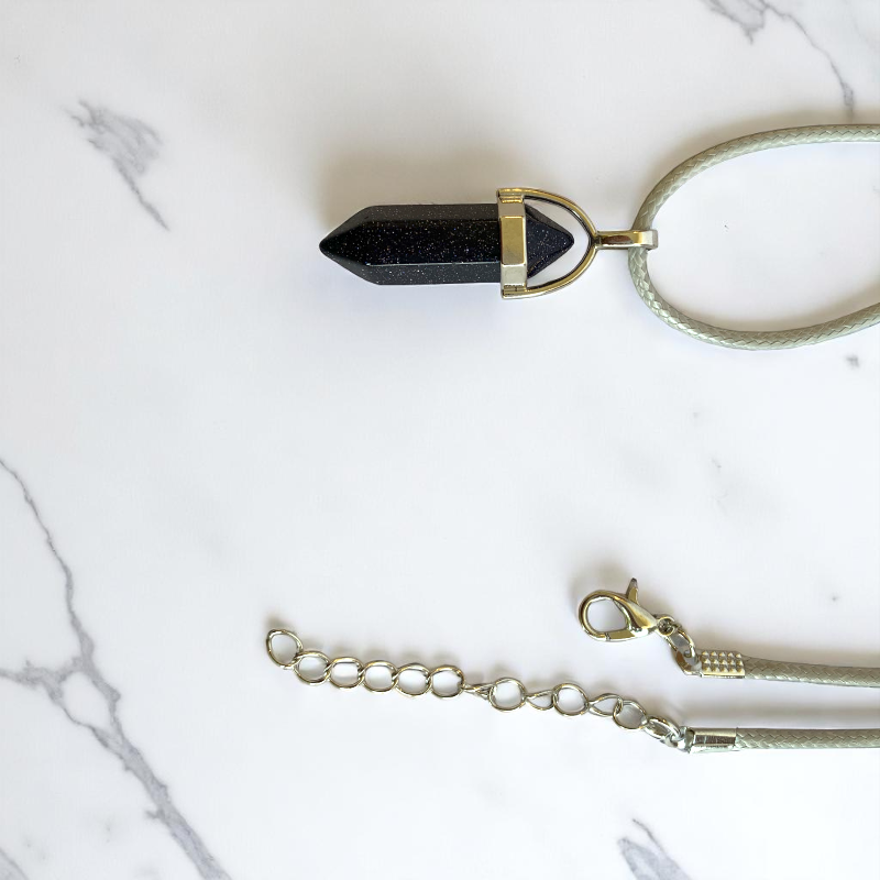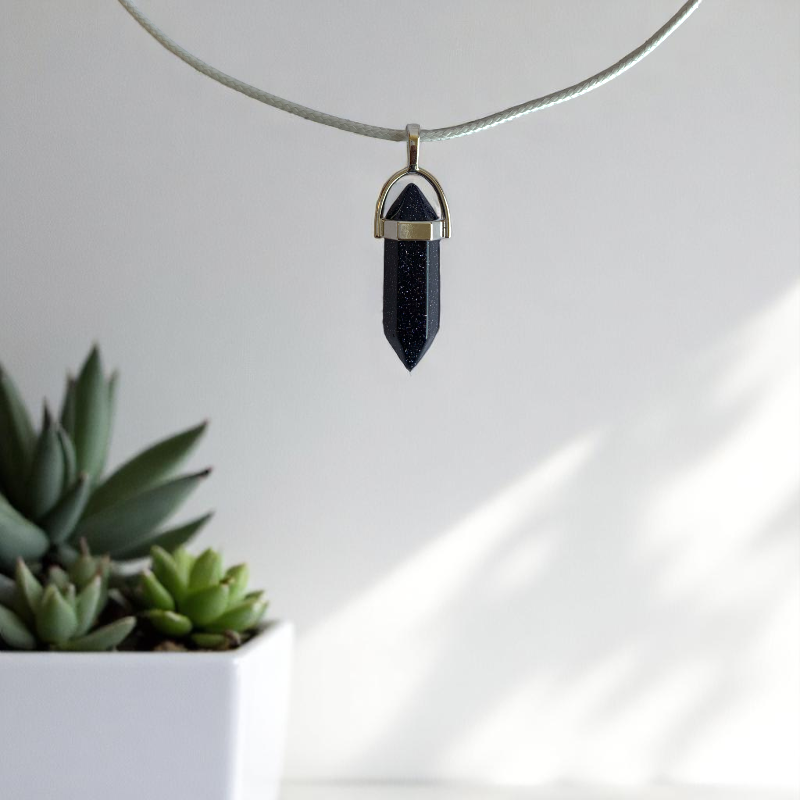 - ✨ Blue Sandstone Pendant – Shimmering with starlike sparkles for a magical vibe