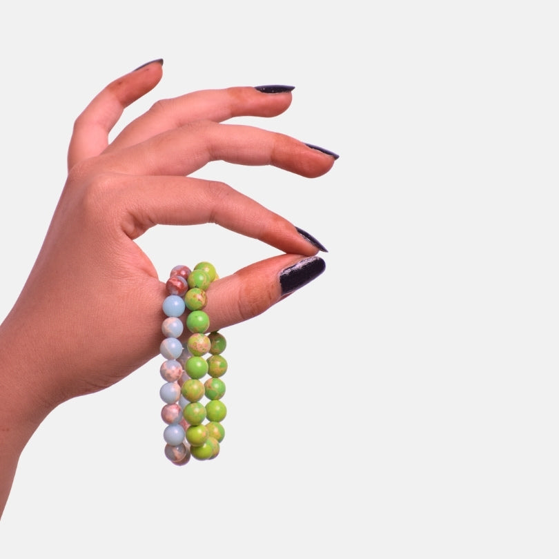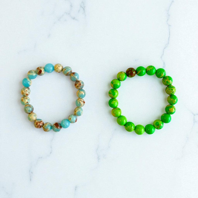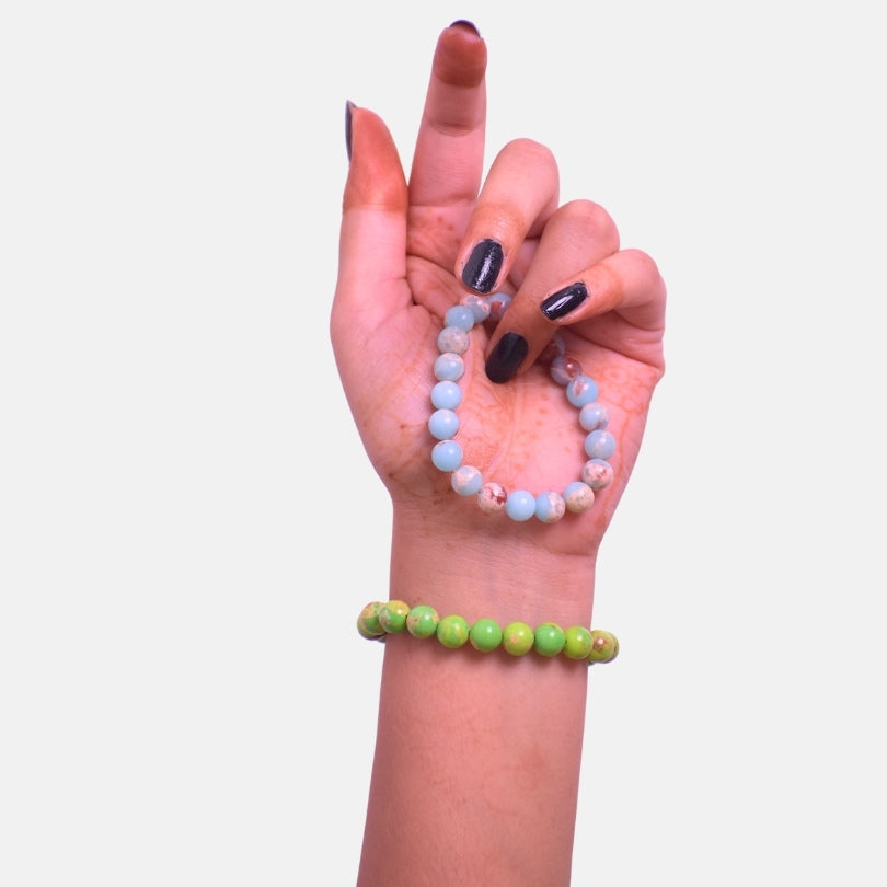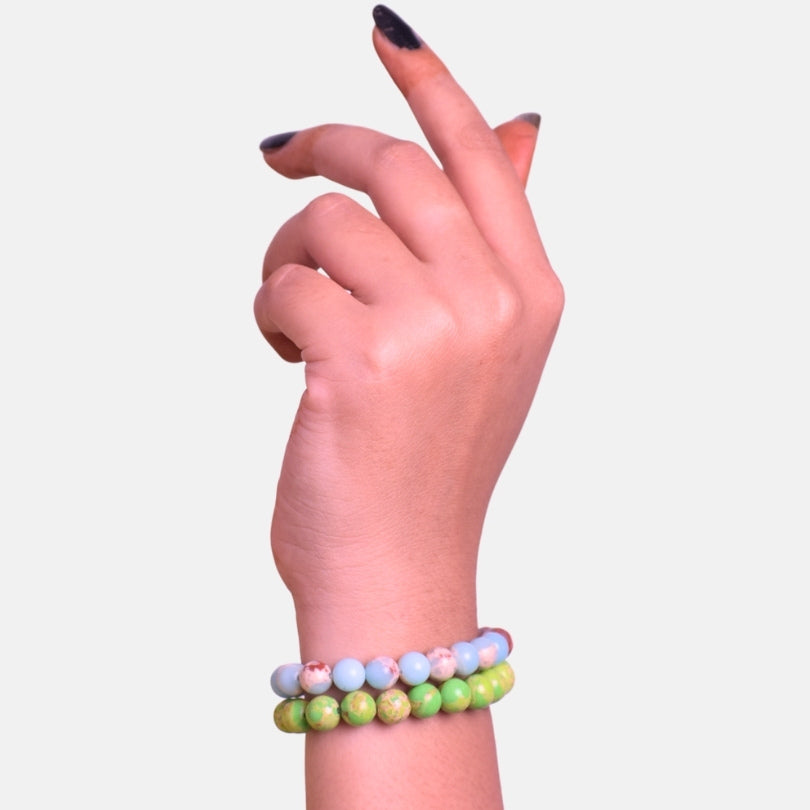 - ππ Set of Two Nature-Inspired Bracelets β Includes one bracelet made from vibrant Lime Sea Sediment Jasper and another from calming Aqua Terra Jasper, capturing the essence of ocean and earth.