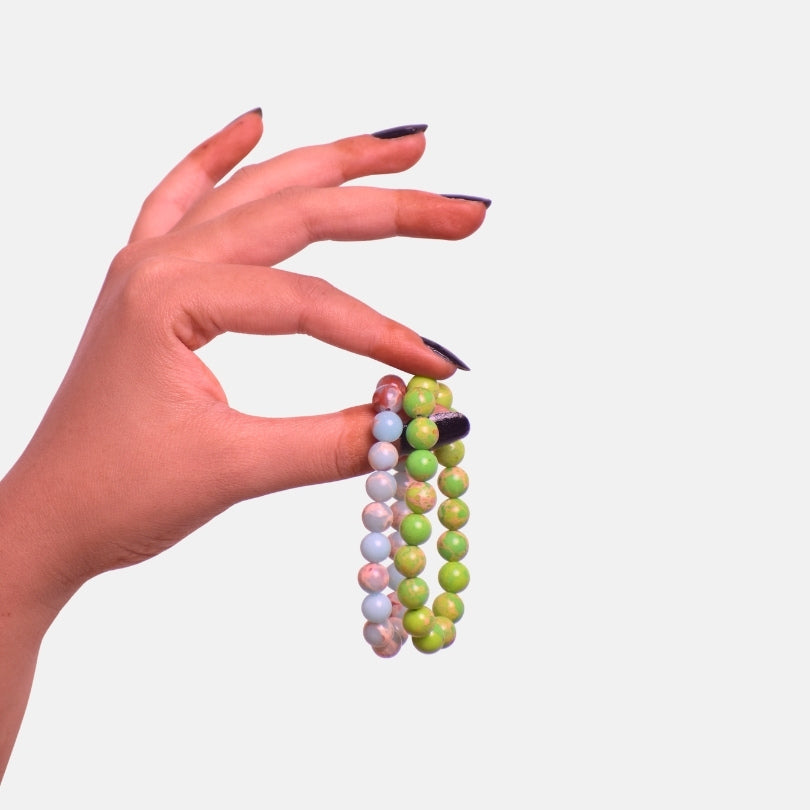 Ocean Whisper duo | Sea Sediment & Aqua Terra Jasper Stones β For Women | Includes: Bracelet (Set of 2)