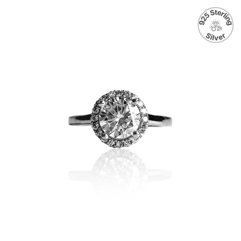 - Crafted from premium 925 sterling silver, this ring offers a polished finish that enhances the brilliance of the zirconia stone, creating a refined and elegant appearance.