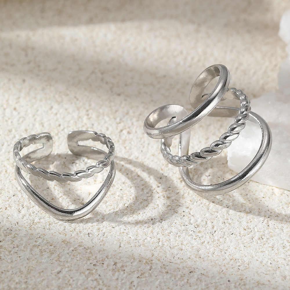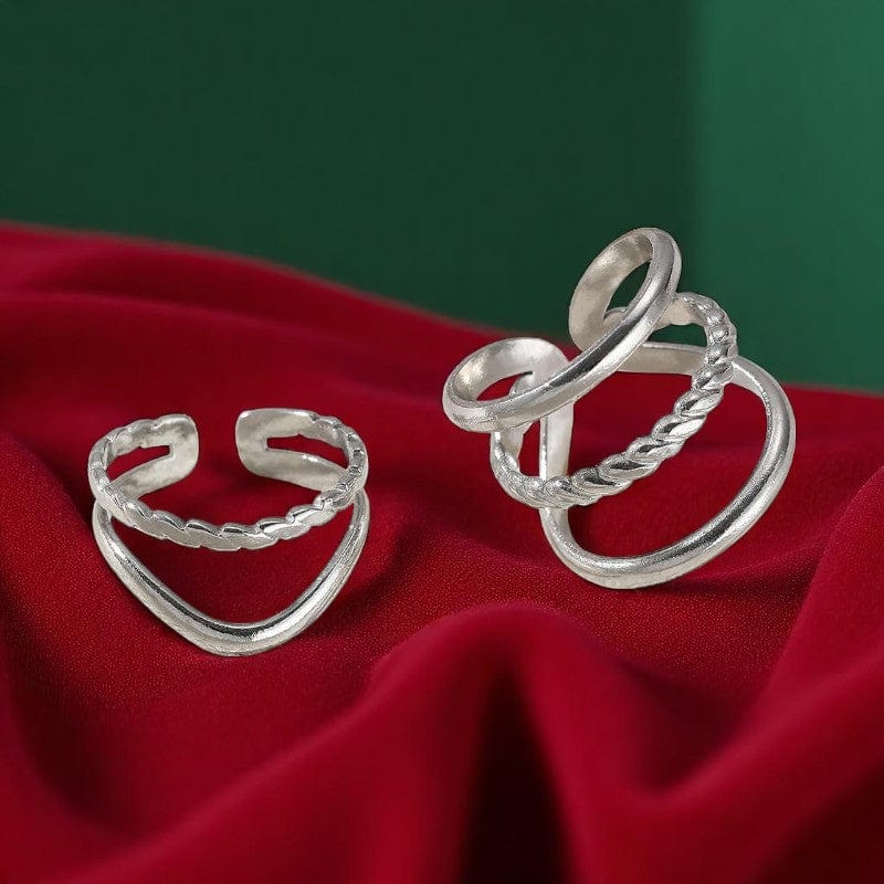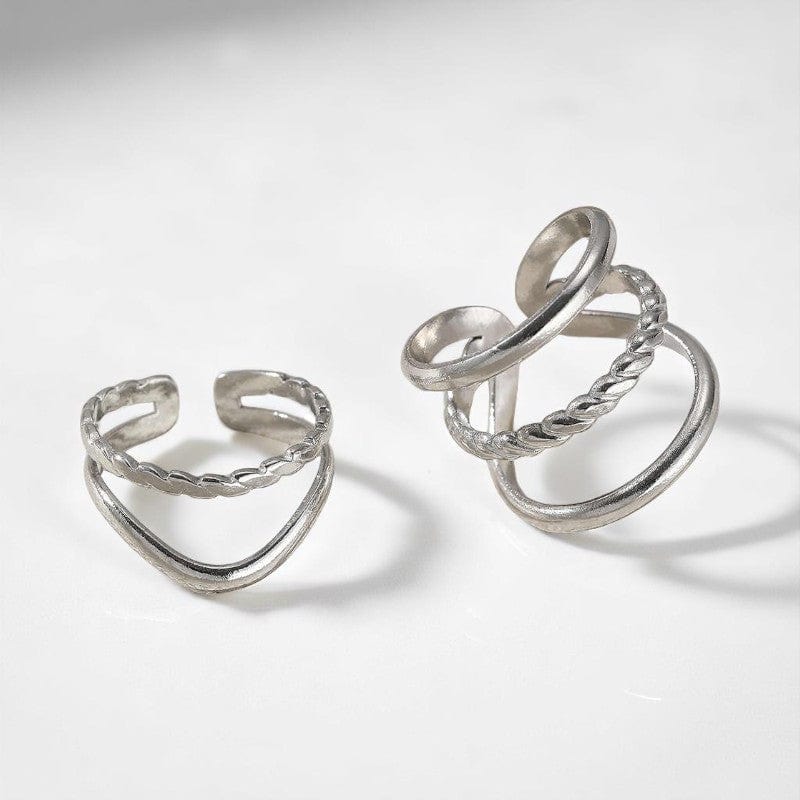 - 💍 Stylish Ring Set: Includes a pair of silver-tone adjustable rings – one with three layered bands and the other with two layered bands for a bold, modern look.