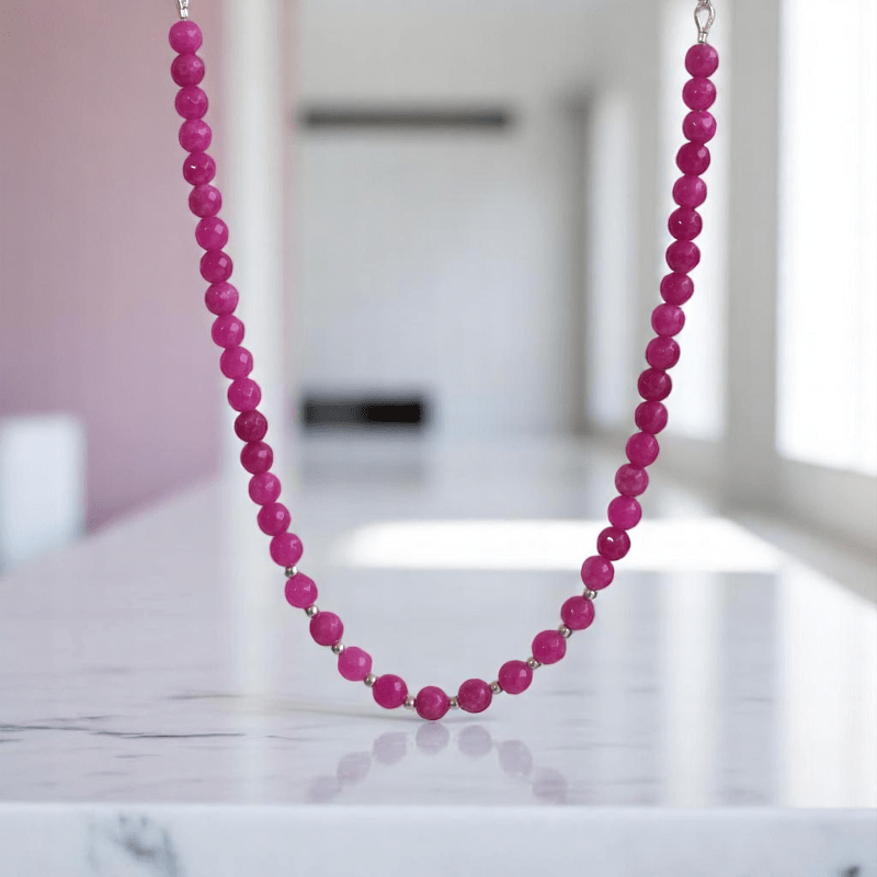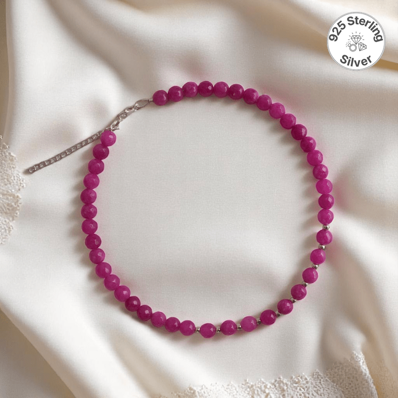 Cherry Blaze Necklace | 925 Silver & Pink Agate Stone - For Girl Kids | Includes: Necklace