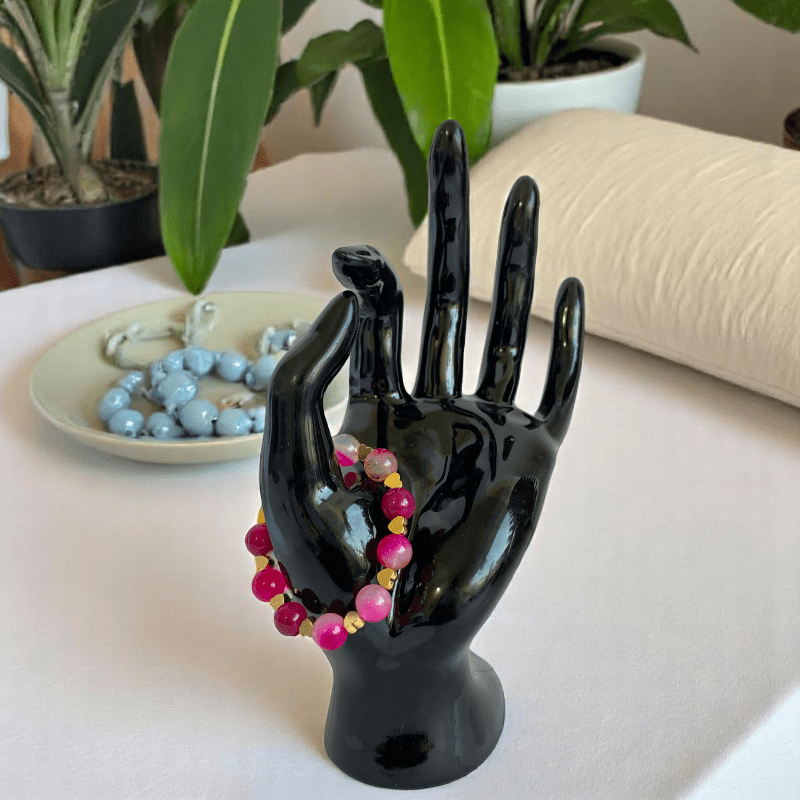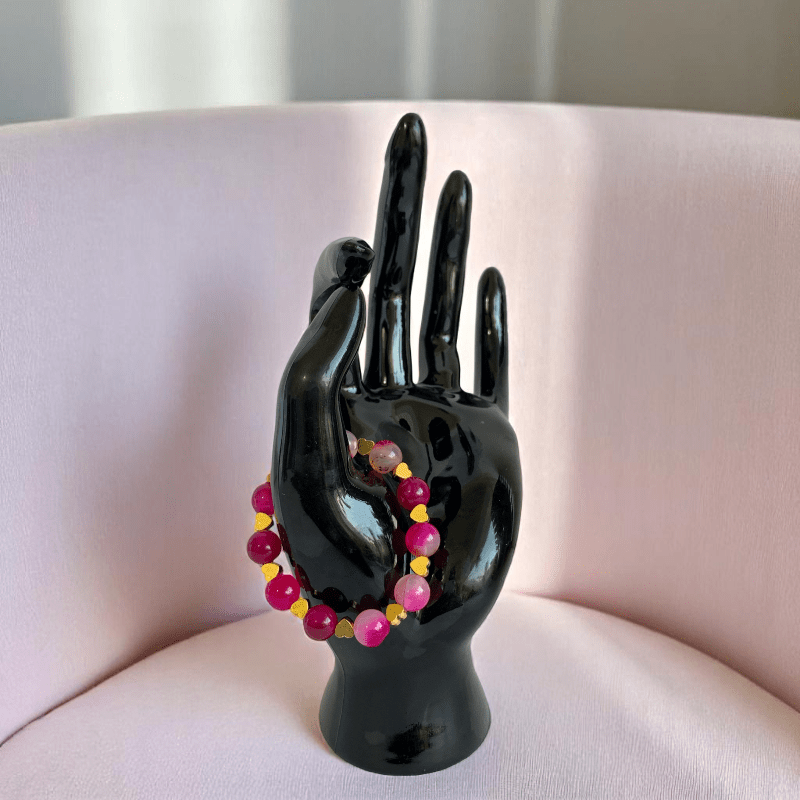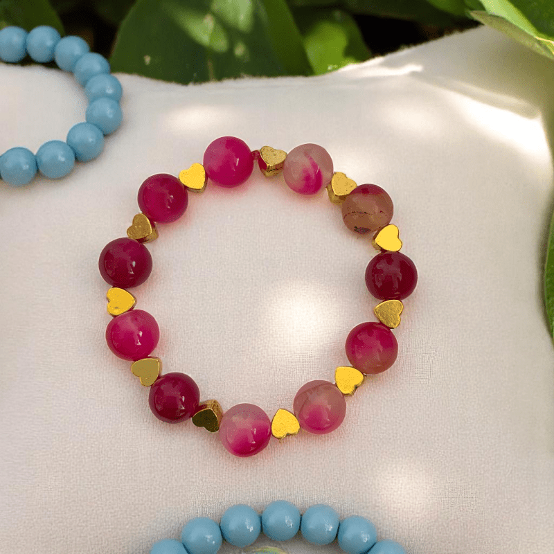 Little hearts Bracelet | Pink Agate Stone - For Kids | Includes: Bracelet