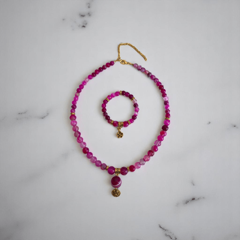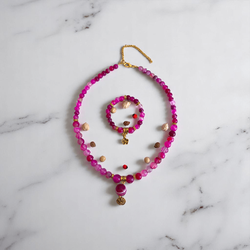 Rosy Essence Set | Pink Banded Agate Stone - For Women | Includes: Necklace, Bracelet