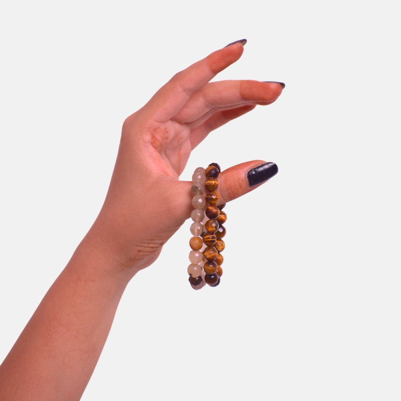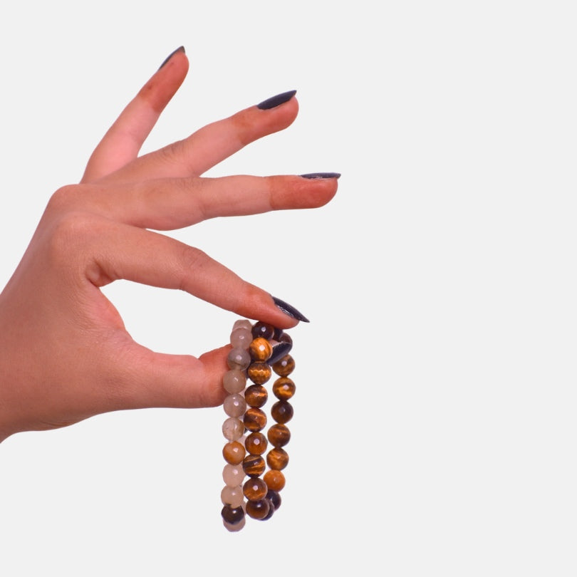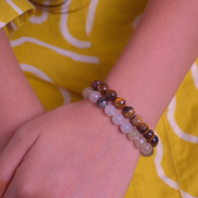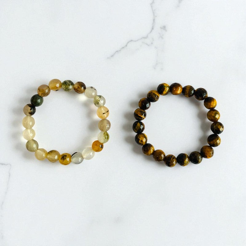Power Duo Bracelets | Tiger Eye & Yellow Opal Stones – For Women | Includes: Bracelet (Set of 2)