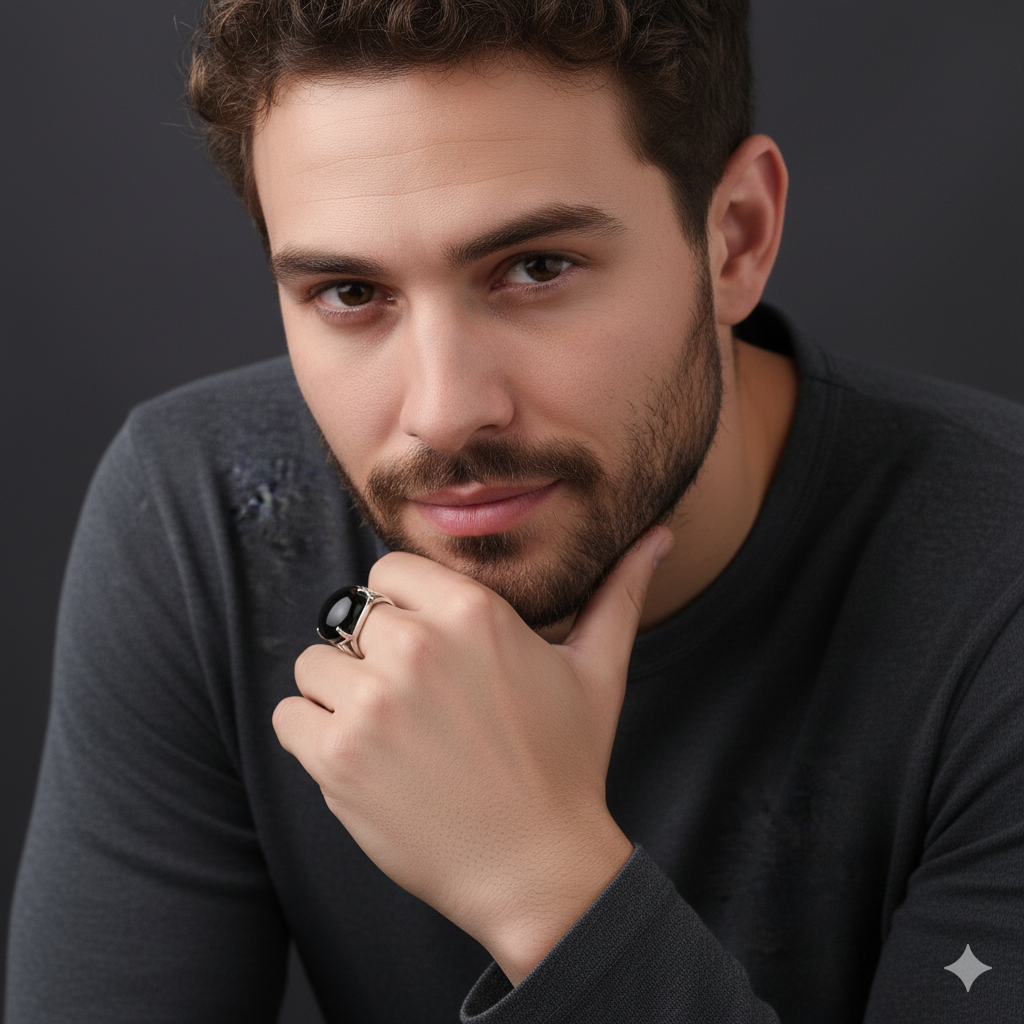 Protection Bezel Ring Flexi Size | Black Obsidian – For Men | Includes: Ring