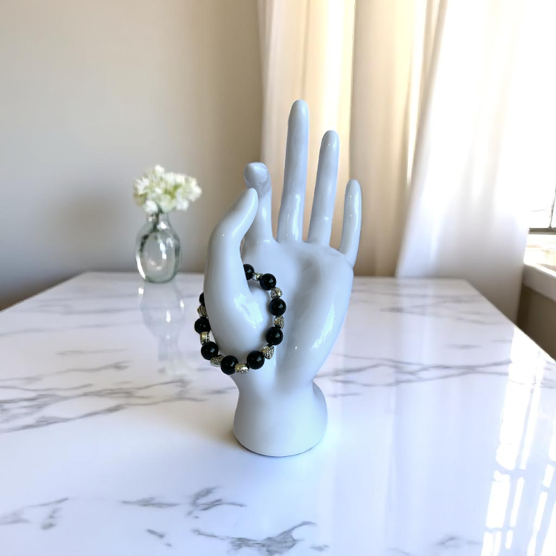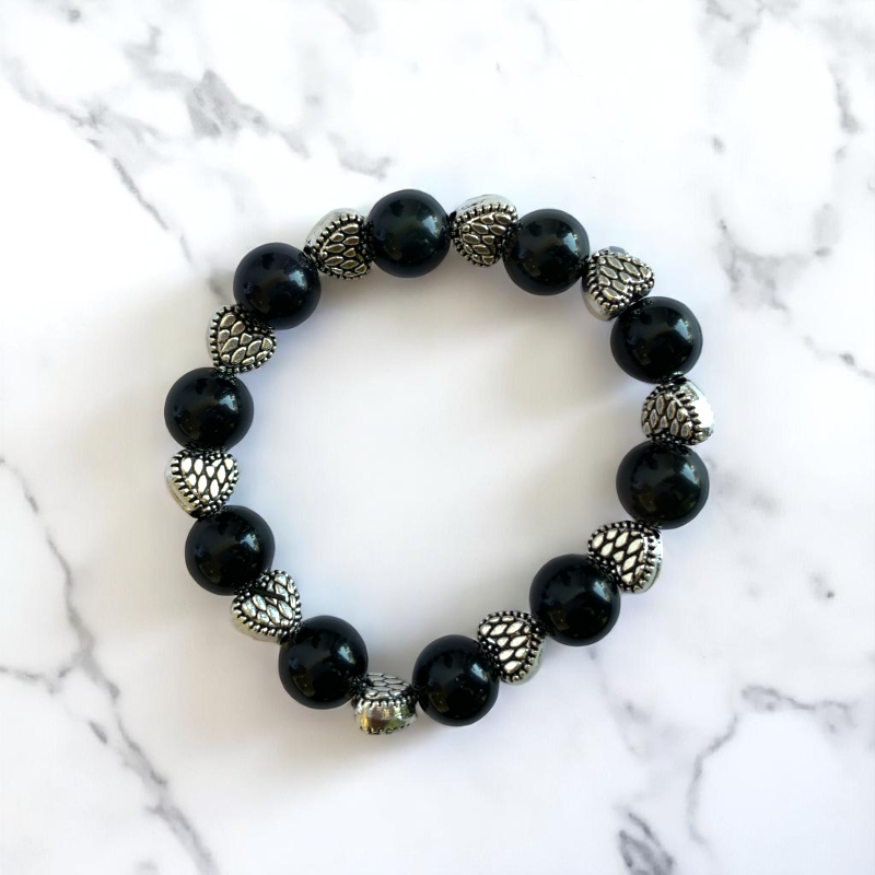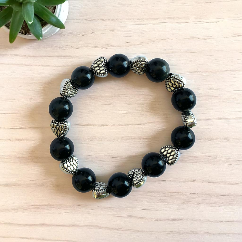 - 🖤 Black Obsidian Stone Bracelet – A stylish bracelet featuring polished black obsidian stones, known for their grounding and protective properties ✨ Heart-Shaped Spacer Beads – Made from hypoallergenic zinc alloy, adding charm while ensuring comfort and durability 🌿 Safe & Comfortable – Gentle on sensitive skin for all-day wear 👗 Stylish & Supportive – Perfect for school, play, or special occasions while offering emotional support 🎁 Perfect Gift for Kids – A meaningful and fashionable accessory they’ll love to wear.