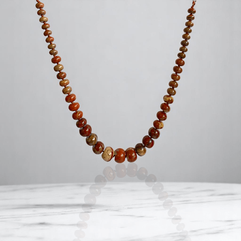 - Elevate your accessory game with the Red Jasper Stone Necklace, a stunning blend of natural beauty and timeless elegance.
