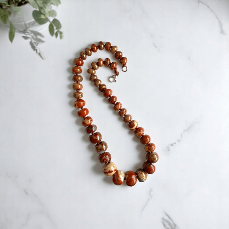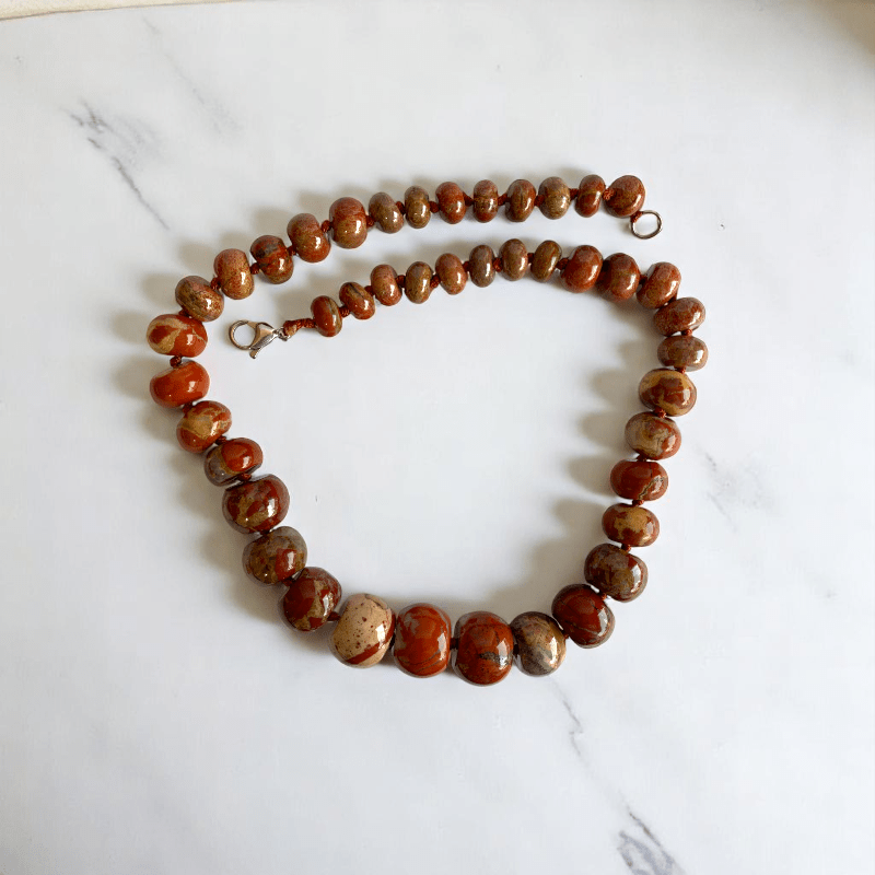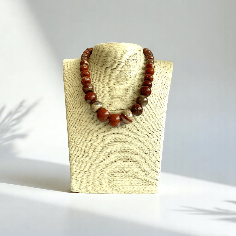 - Known for its deep, earthy red hues, red jasper is often associated with strength, vitality, and confidence, making this necklace more than just a fashion statement