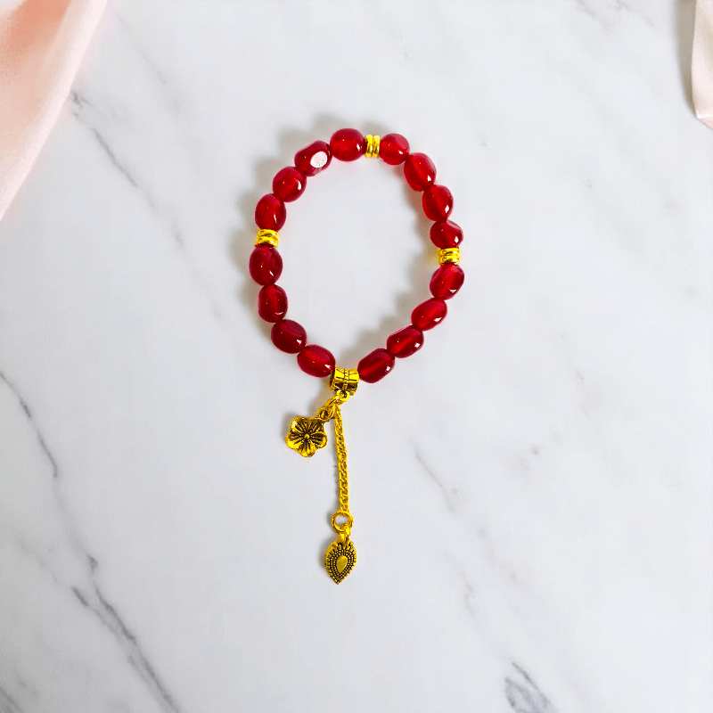 - The luxurious golden tone of the pendant, bracelet, and earrings complements the intense, passionate red of the Red Onyx, adding a touch of warmth and radiance to any outfit.