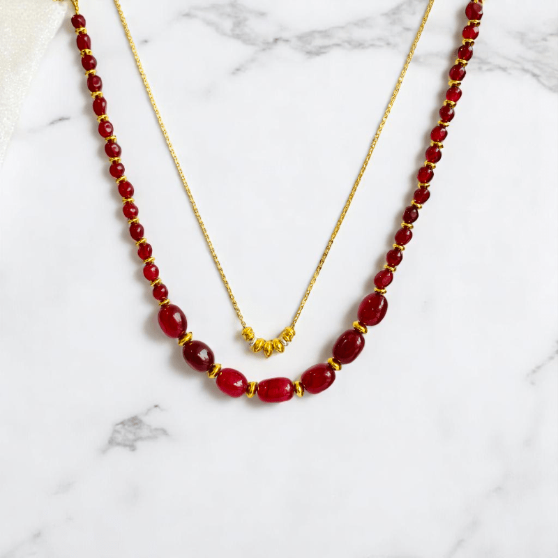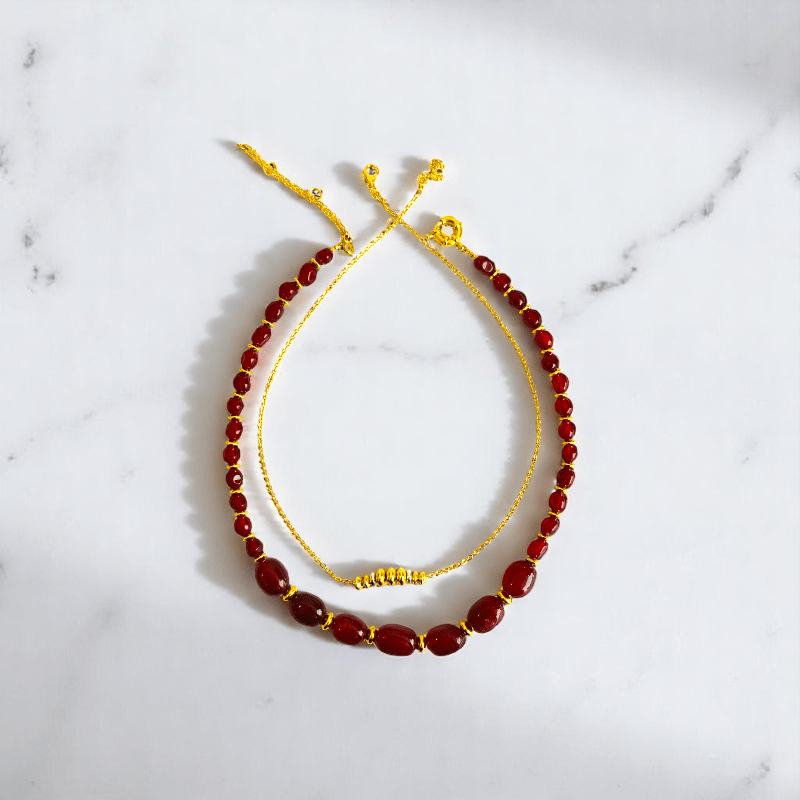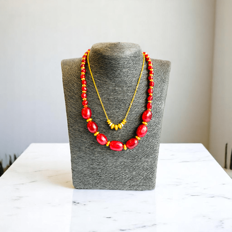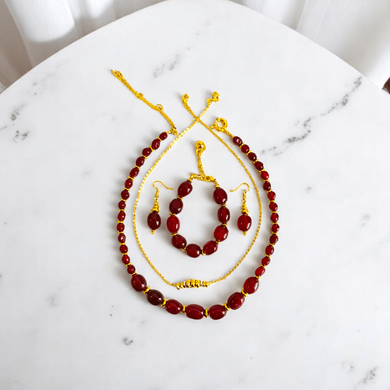 Radiant Flame Set | Red Onyx Stone & 18K Gold Plating - For Women | Includes: 2 Necklaces, Bracelet, Earring