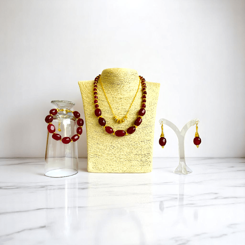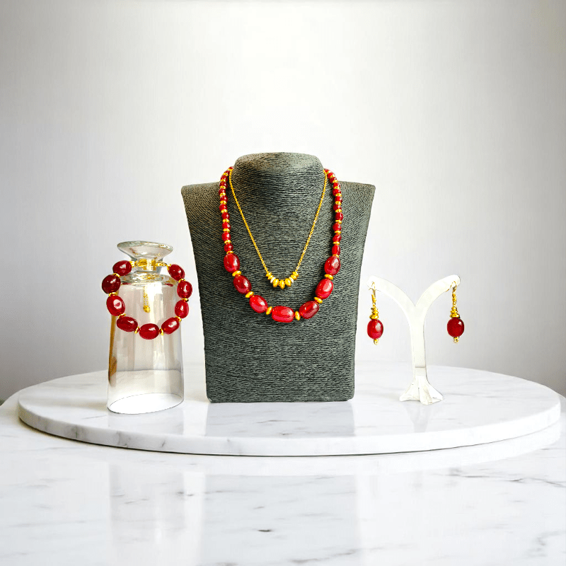 - Ignite your style with the Red Onyx Jewellery Set, a powerful fashion statement that exudes confidence and strength.