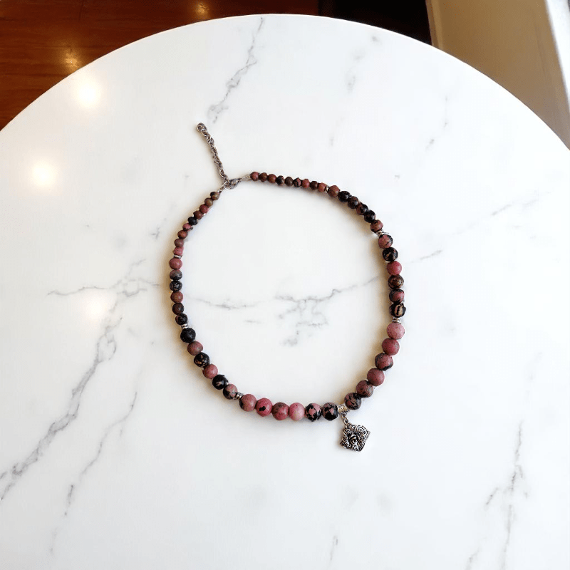 - Each Rhodonite stone showcases a unique blend of soft pink and deep black veining, making every piece one-of-a-kind.