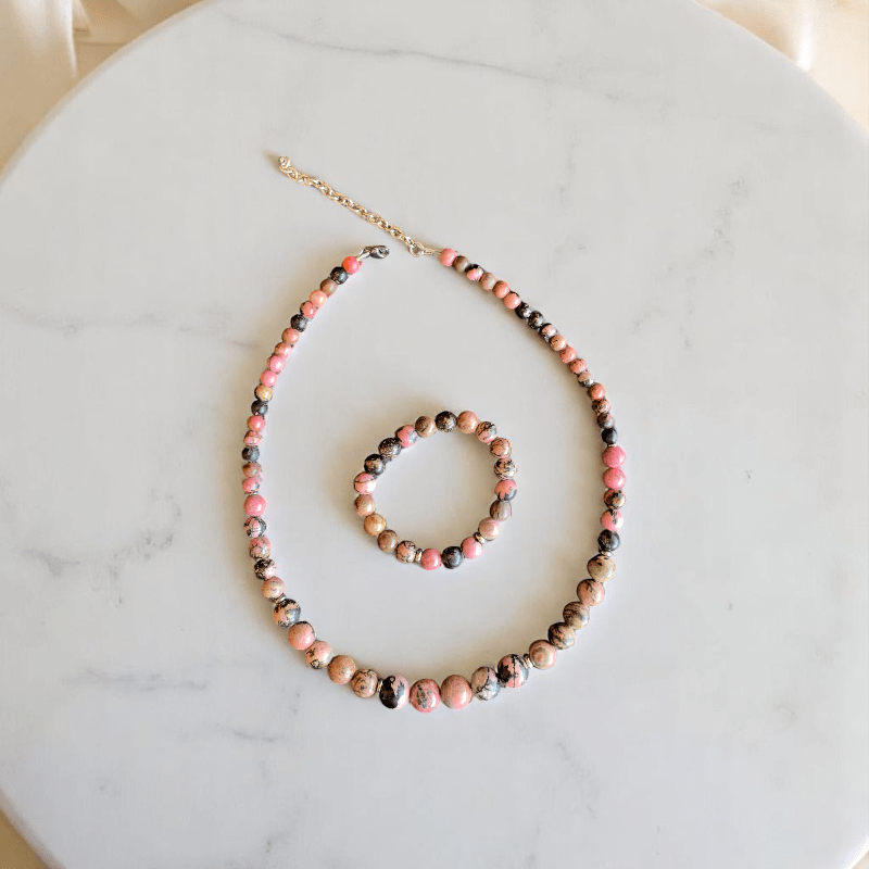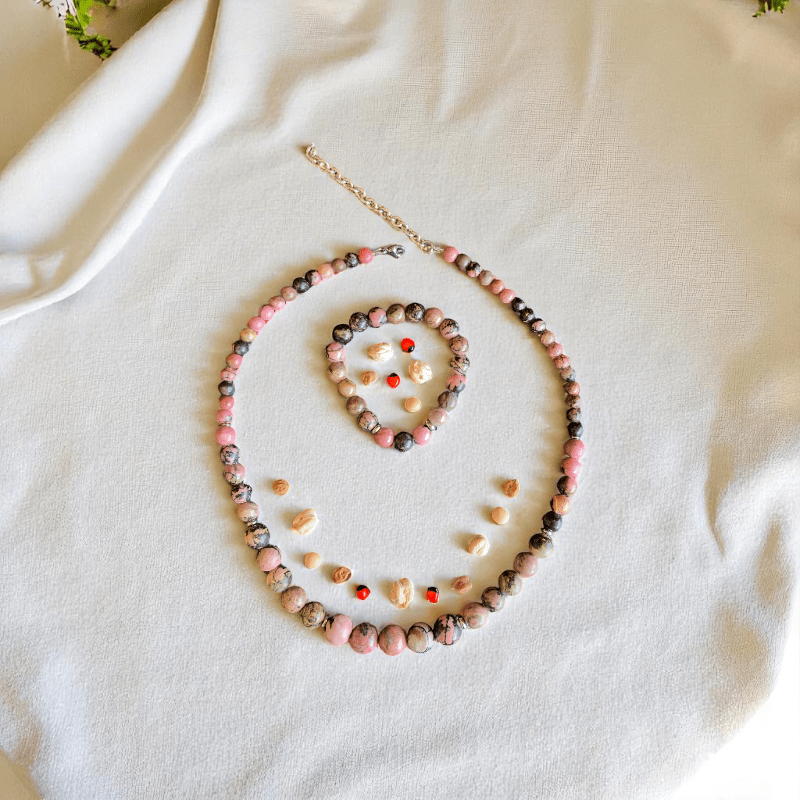 Blush Stone Set | Rhodonite Stone - For Women | Includes: Necklace, Bracelet