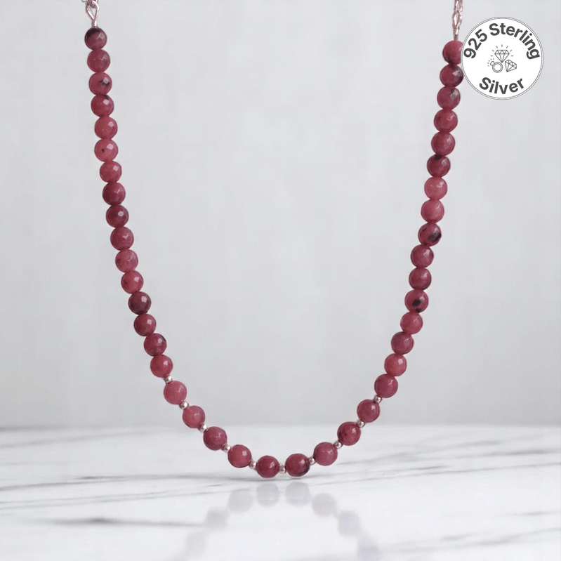 Playful Glow Necklace | 925 Silver & Rhodonite Stone - For Girl Kids | Includes: Necklace