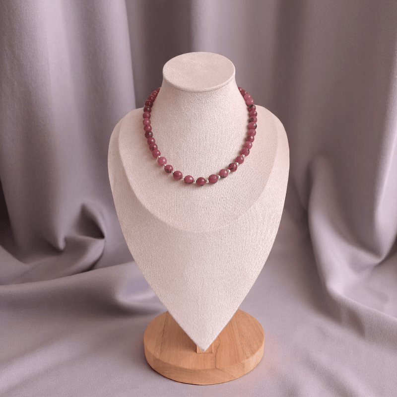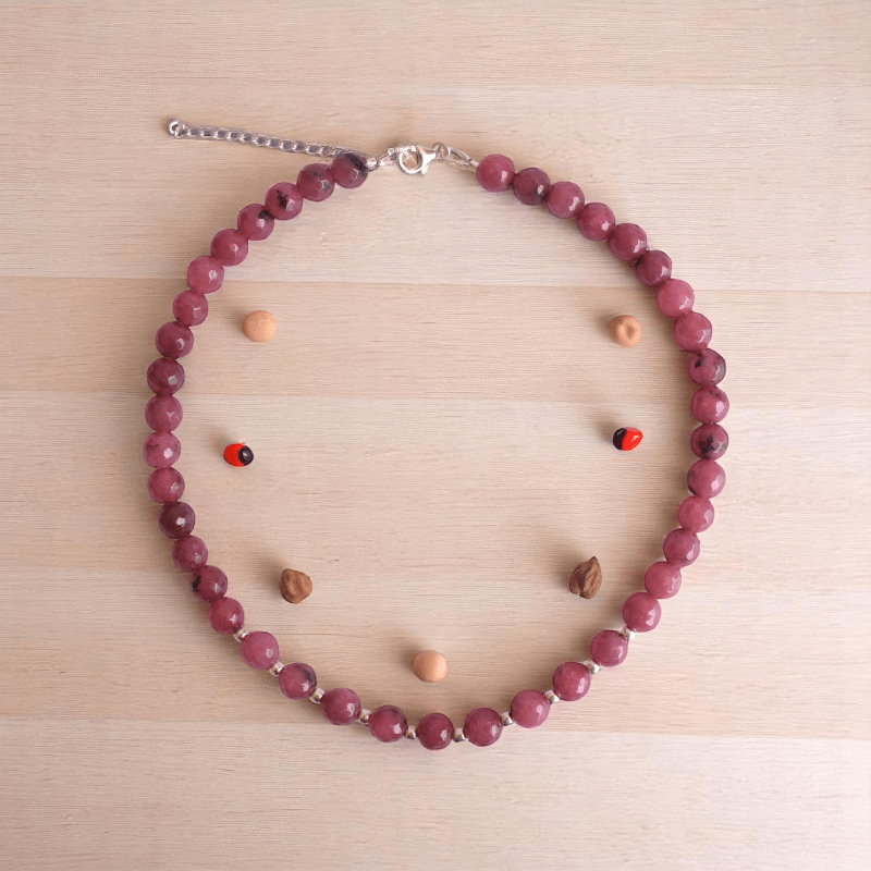- Necklace made from natural Rhodonite stones, designed for girl kids.