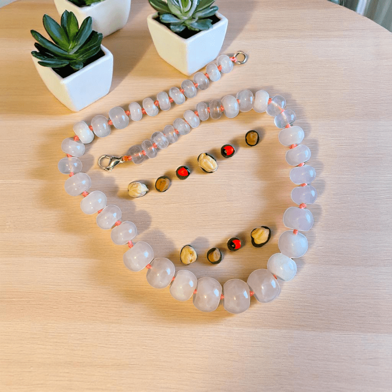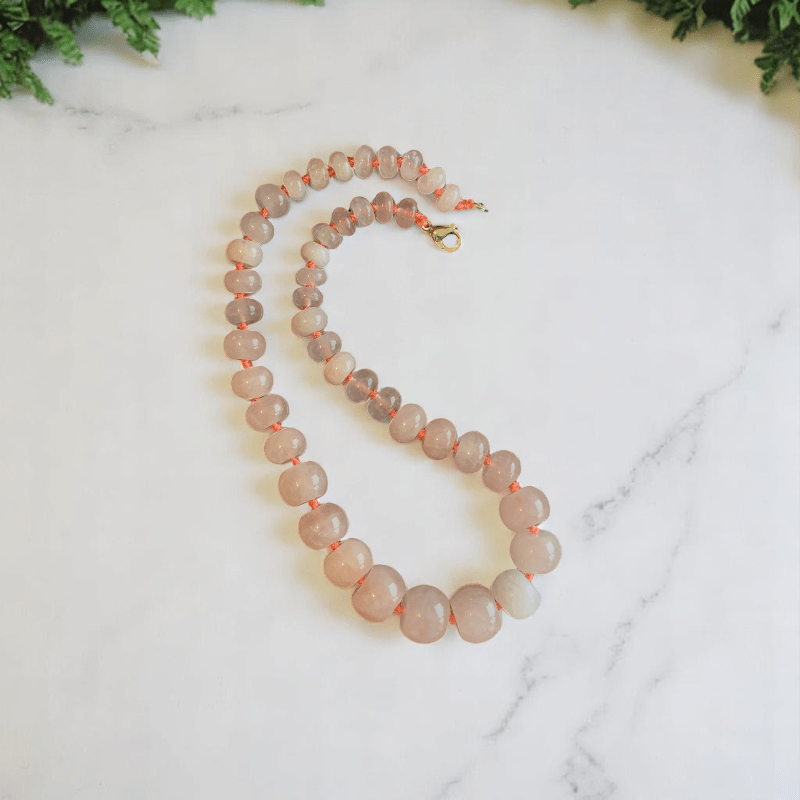 - Elevate your style with the Rose Quartz Stone Necklace, a chic and timeless fashion accessory that blends beauty, elegance, and meaning.