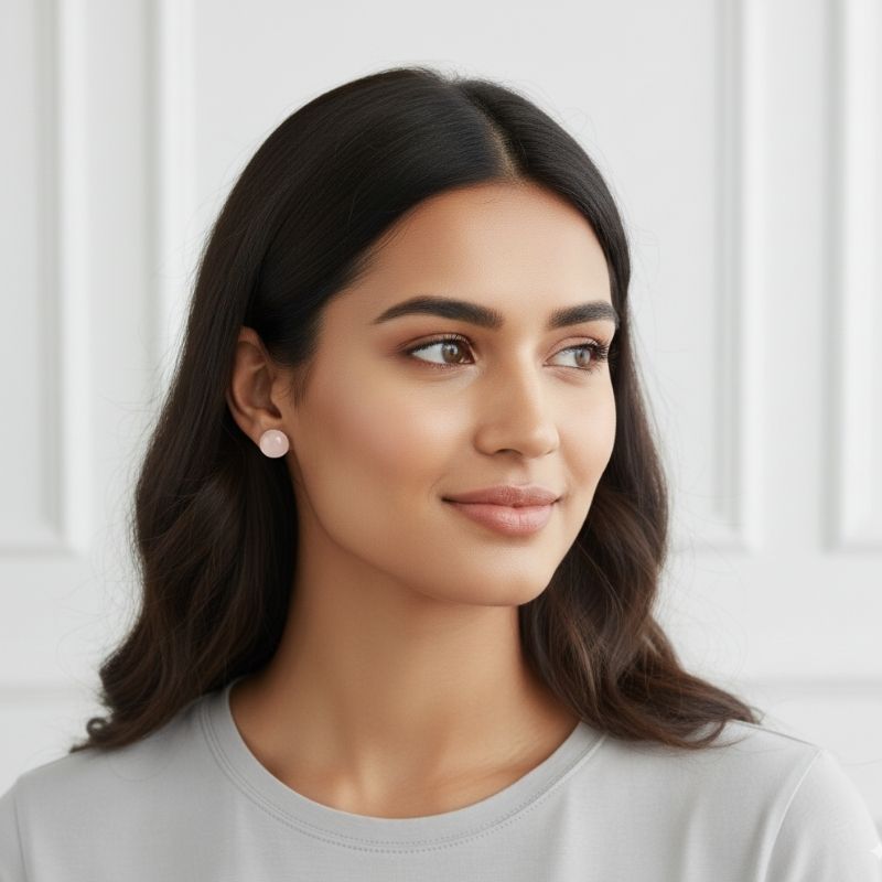 - Elegant stud earrings featuring soft pink rose quartz – symbol of love and compassion