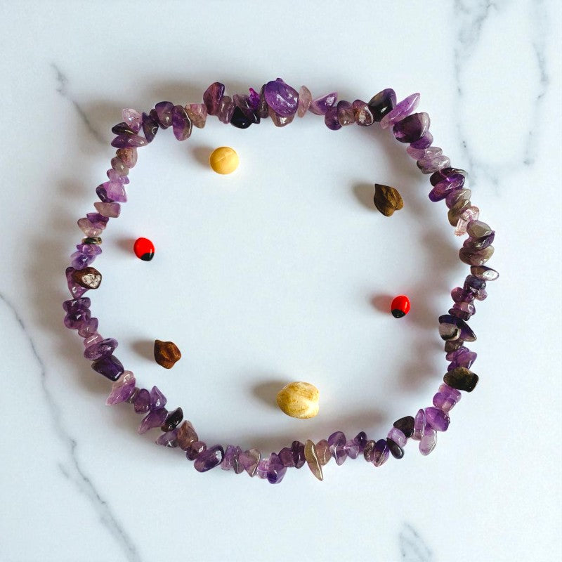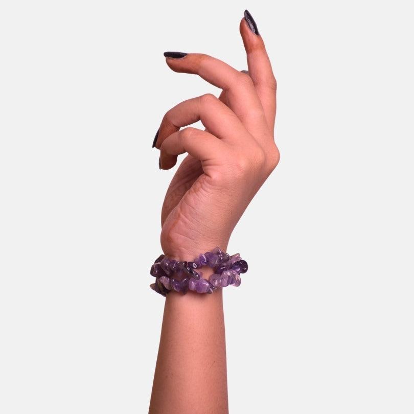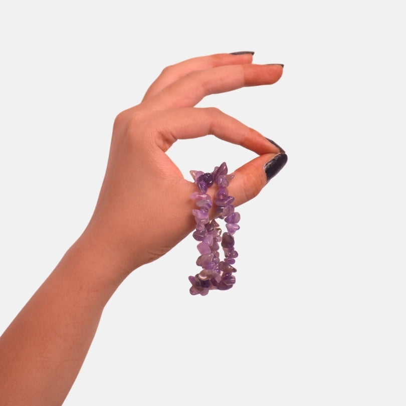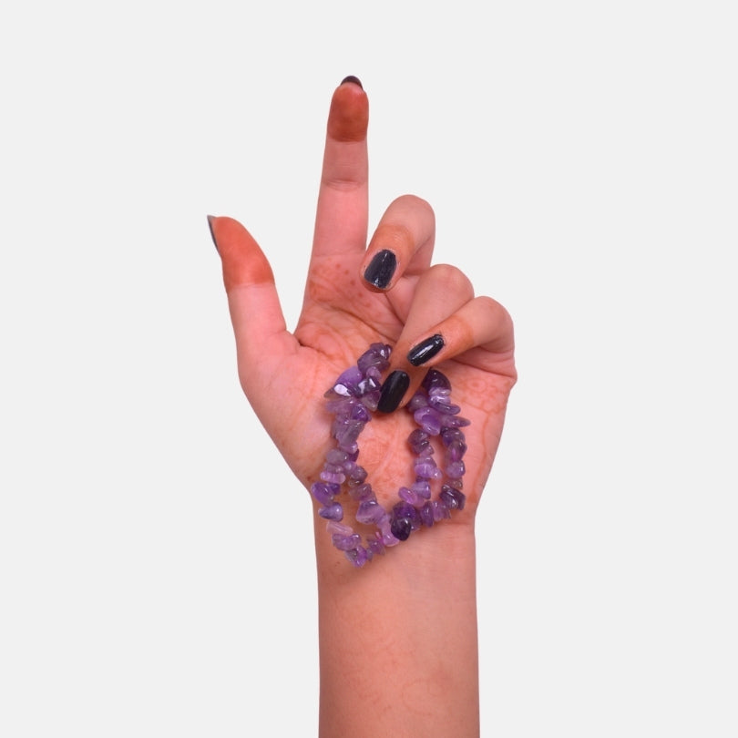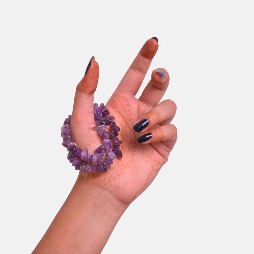 - 💜 Amethyst Chip Bracelet – Beautifully handcrafted using natural amethyst stone chips known for their stunning violet hue and calming energy.