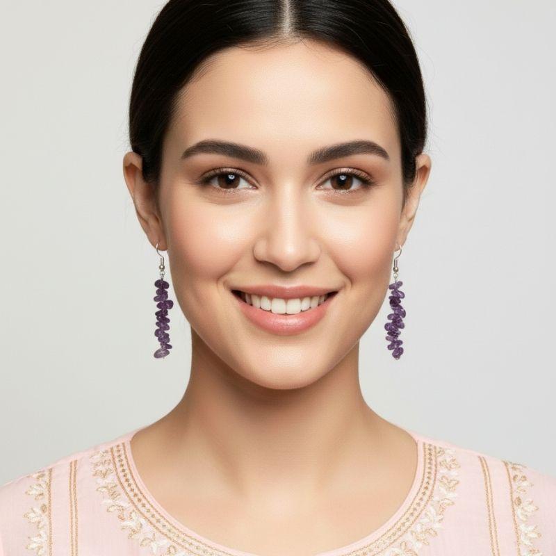 - Elevate your spirit with these silver-plated amethyst chip earrings — full of protective and calming energy.