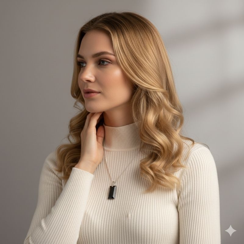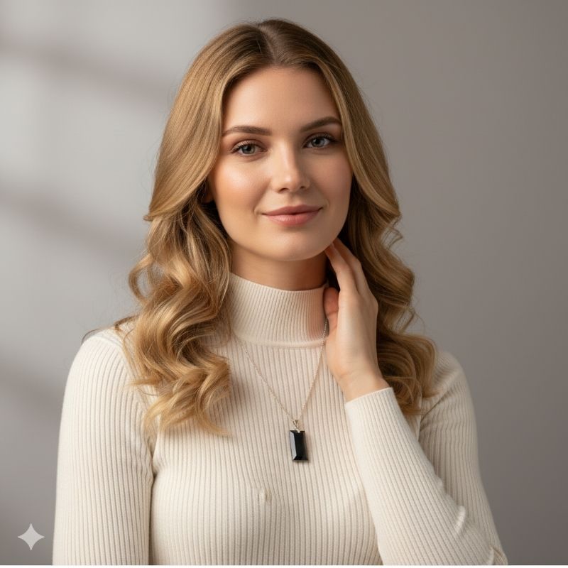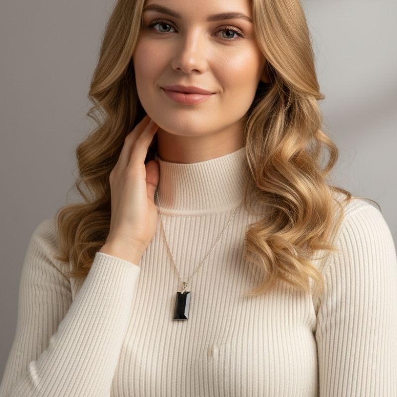 - Timeless Elegance – the sleek black pendant pairs effortlessly with casual, formal, or evening looks.