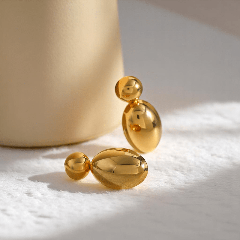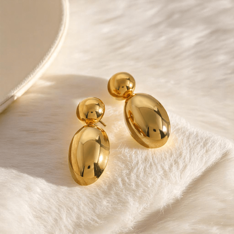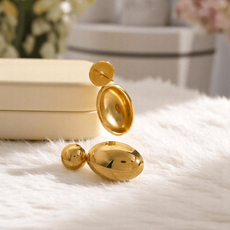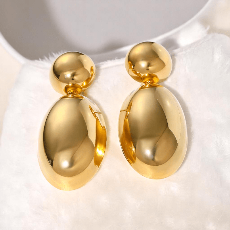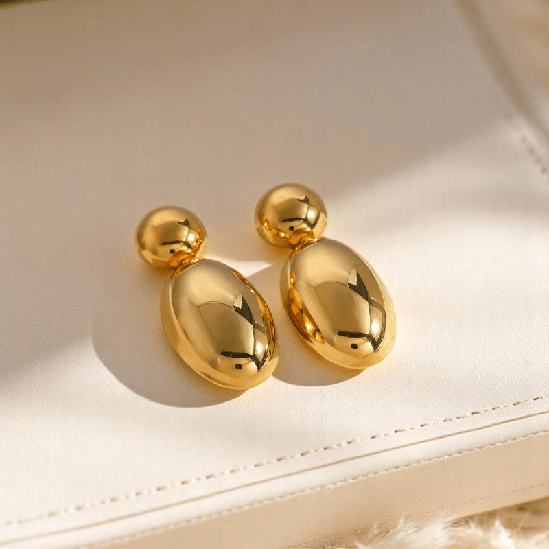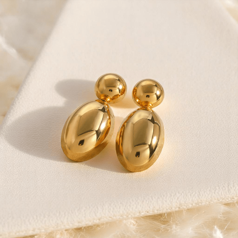- Golden Colour PVD Plated Dainty Statement Earrings offer everyday elegance.