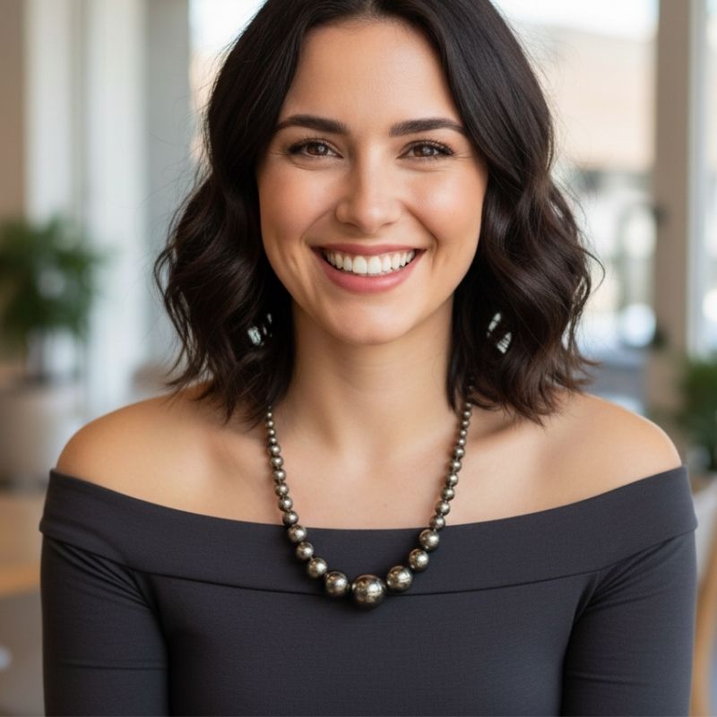 - Featuring the mesmerizing, earthy hues of translucent brown to deep smoky grey, this necklace exudes an air of elegance, mystery, and confidence.