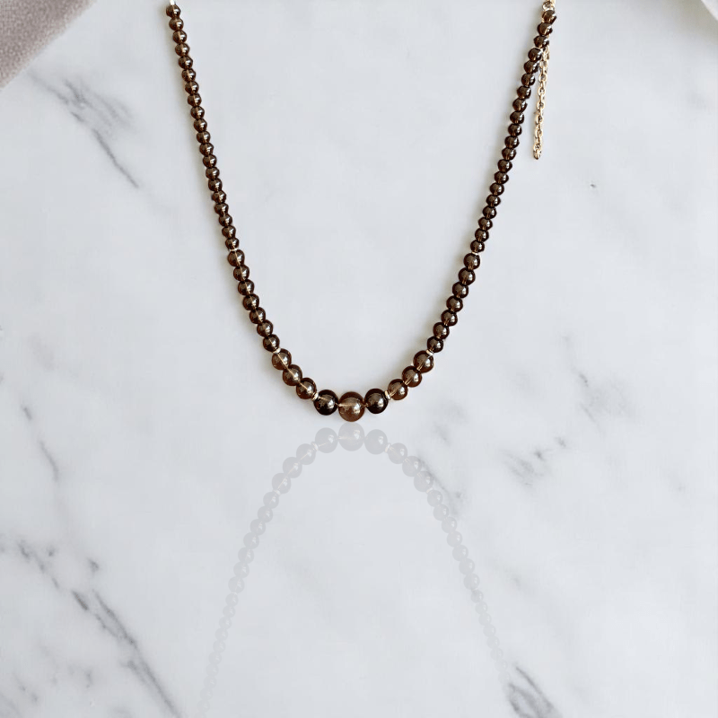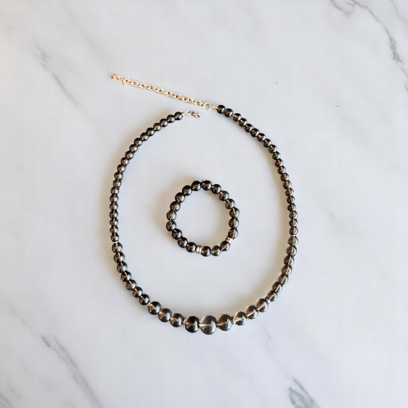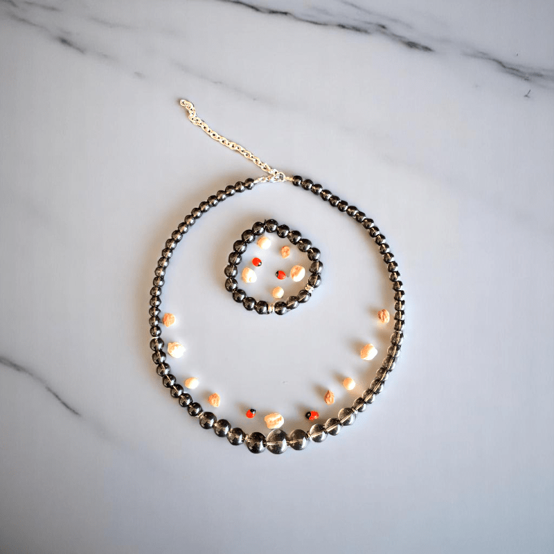 - Add a touch of understated elegance to your wardrobe with the Smoky Stone Necklace and Bracelet Set.