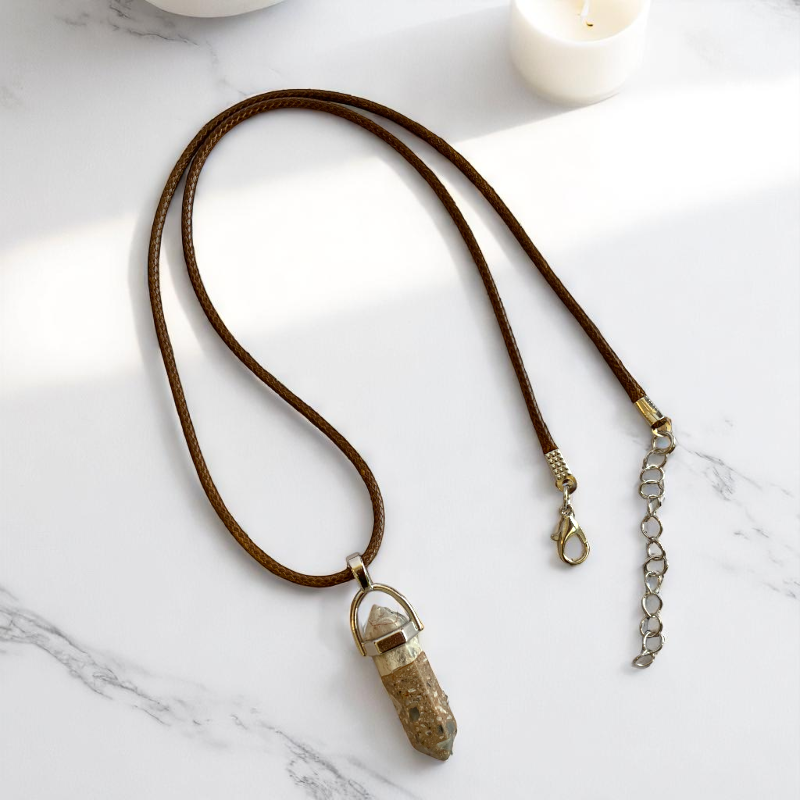 - πΏ Magnesite Agate Pendant β Known for its calming, peaceful energy with soft patterns kids enjoy