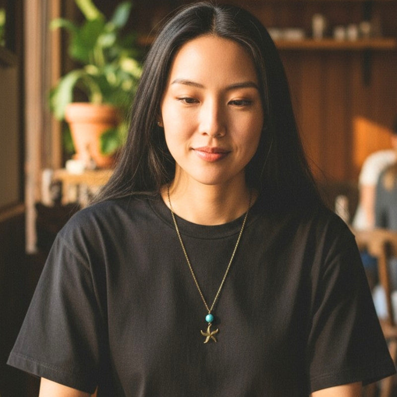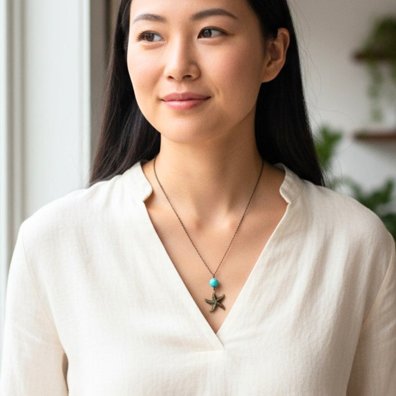 Starfish Turquoise Necklace | Brass & Turquoise - For Women | Includes: Necklace