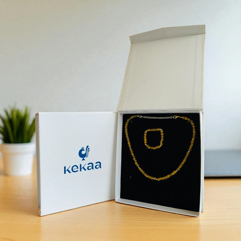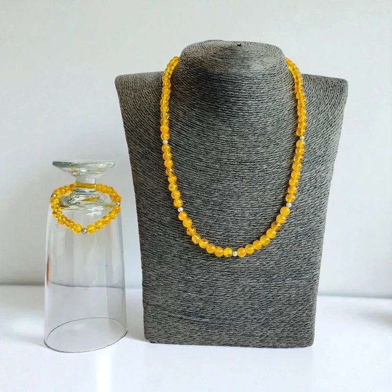 - ☀️ Yellow Citrine Necklace & Bracelet Set – A cheerful and radiant jewelry duo designed especially for young girls 💛 Genuine Citrine Stones – Known for their bright golden hue, believed to bring joy, abundance, and positive energy ✨ Hypoallergenic Spacer Beads – Made from Zinc Alloy, safe and comfortable for sensitive skin 👗 Everyday Elegance – Lightweight and perfectly sized for girls, easy to wear daily or on special occasions 🎁 Bright Gift Idea – A thoughtful present that spreads sunshine, positivity, and charm.