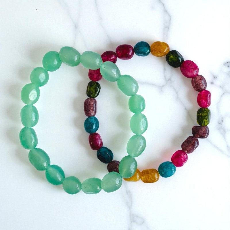 The Wisdom & Willpower Duo | Green Aventurine & Multi Agate – For Kids | Includes: Bracelets (Set of 2)