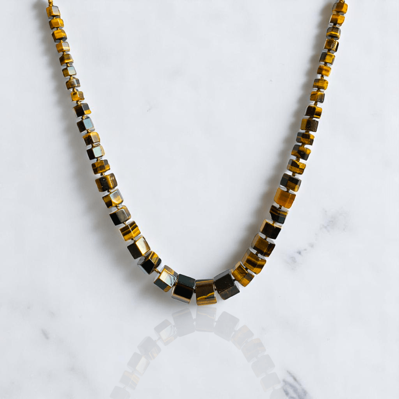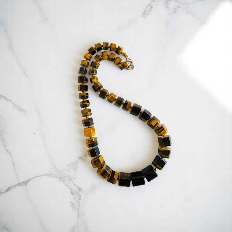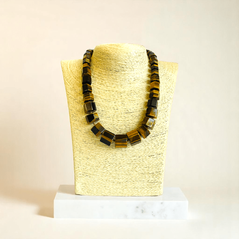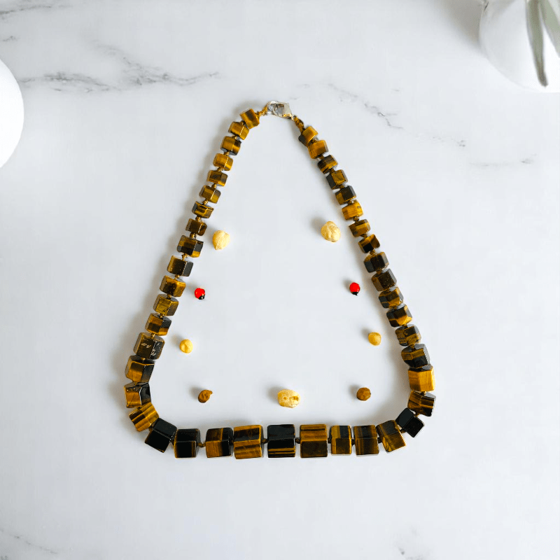 - Unleash your inner strength with our Hexagon-Shaped Tiger’s Eye Stone Necklace