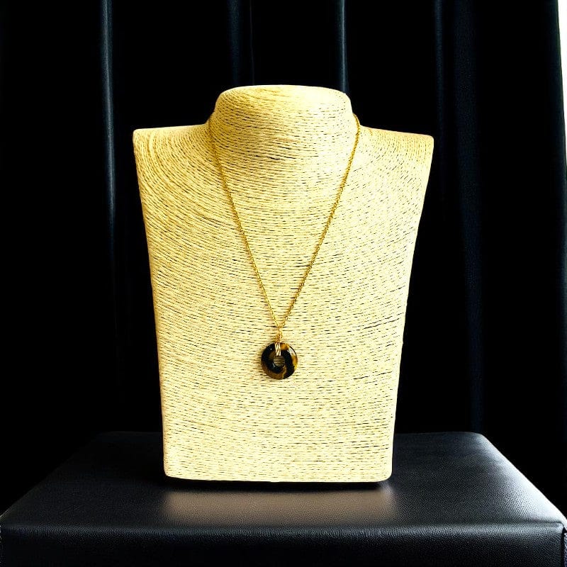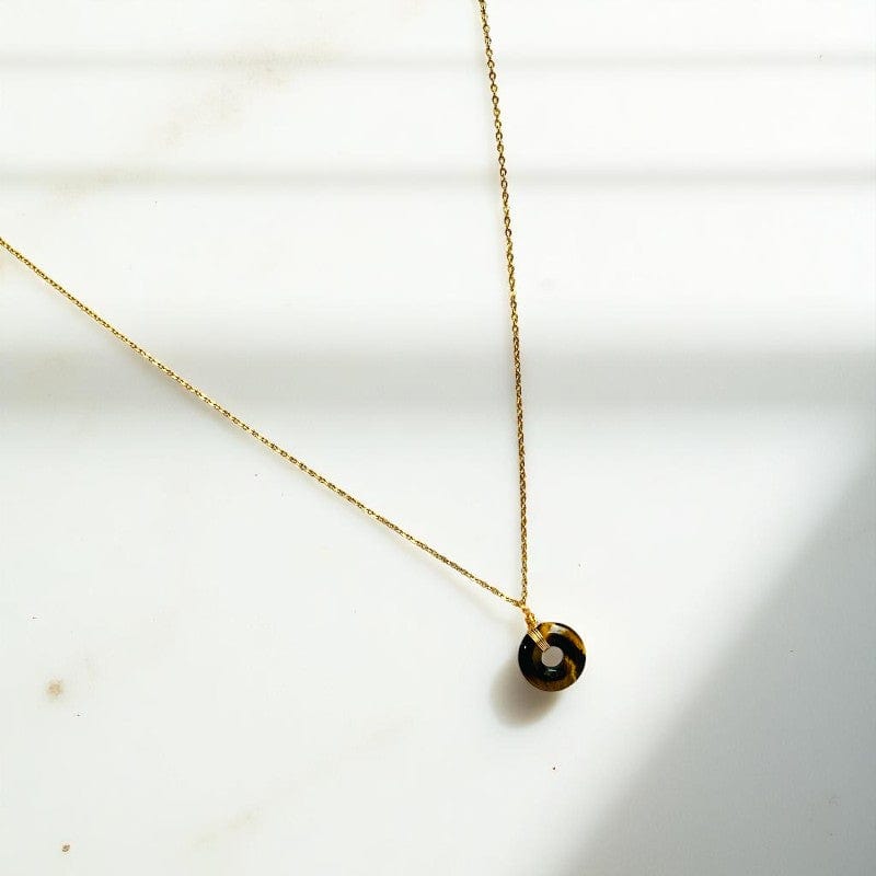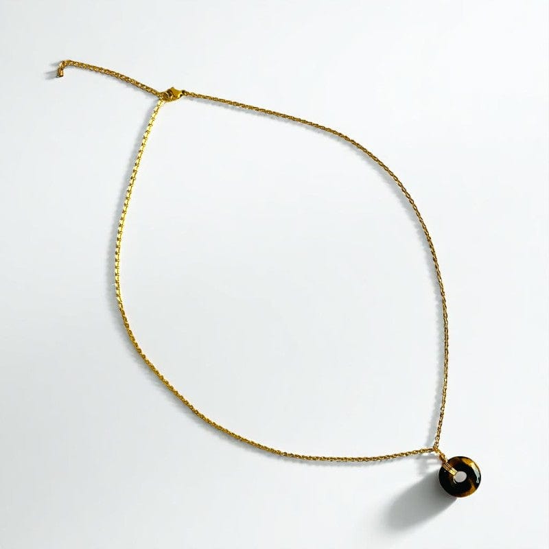 - 🐯 Donut-Shaped Tiger Eye Stone Pendant – Features a polished tiger eye stone with its signature golden-brown shimmer and grounding energy.