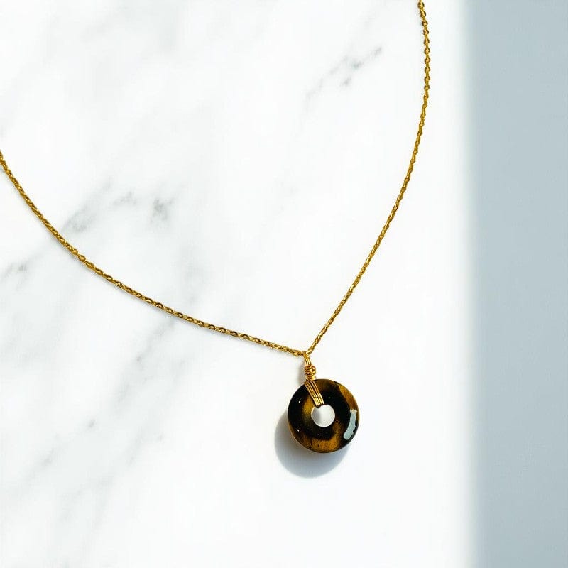 Courage Donut Pendant Necklace | Tiger Eye - For Women | Includes: Necklace