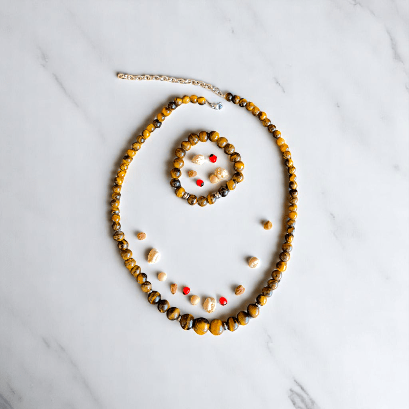 Golden Gaze Set | Tiger Eye Stone - For Women | Includes: Necklace, Bracelet