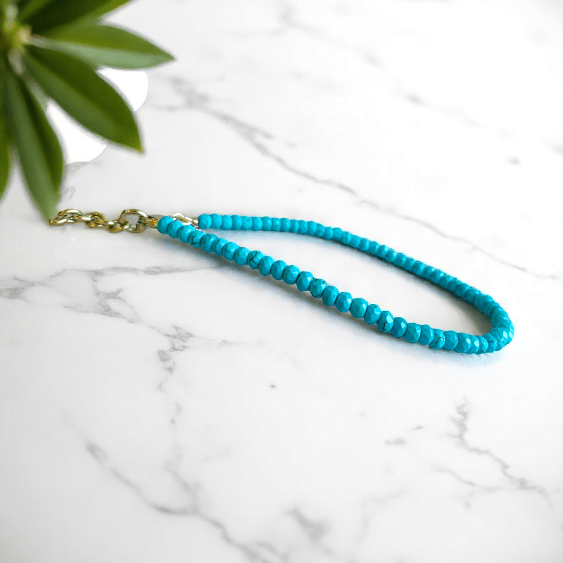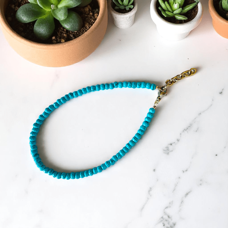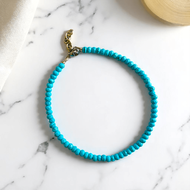 - Infuse tranquility and timeless style into your look with the Turquoise Magnesite Stone Anklet—a must-have for every modern, stylish woman.