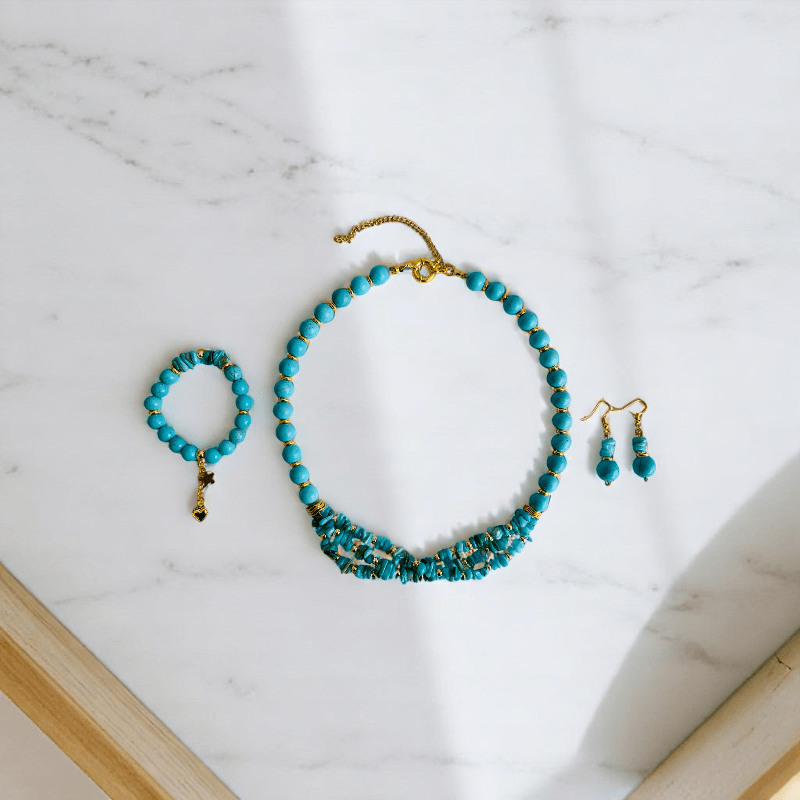 Tranquil Sky Set | Turquoise Stone - For Women | Includes: Necklace, Bracelet, Earring