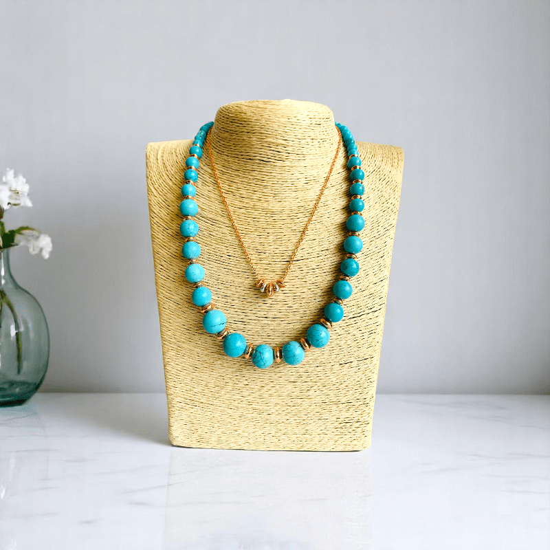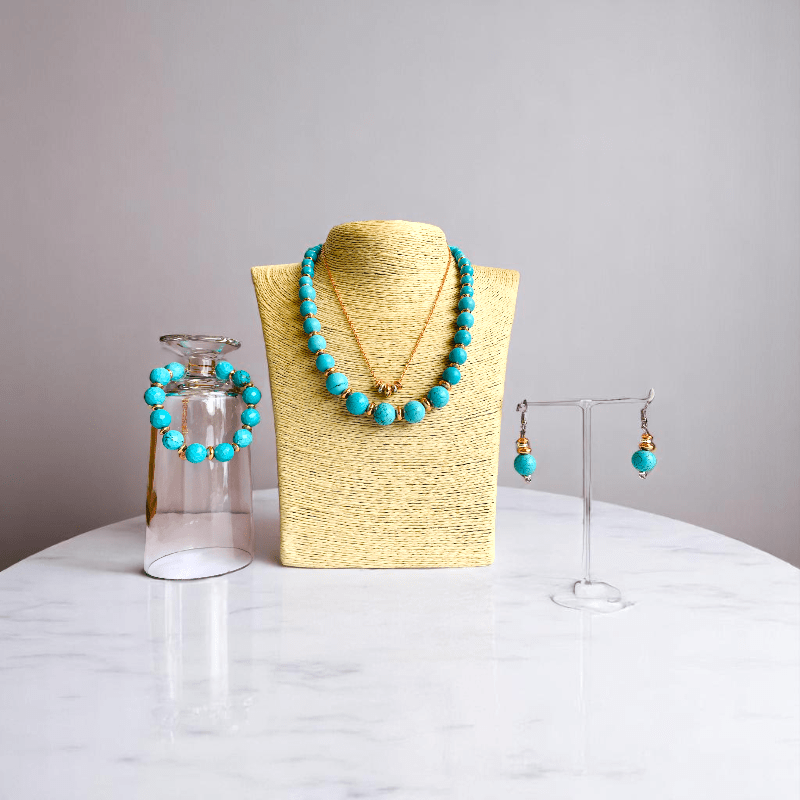 Sky Serenity Set | Turquoise Stone & 18K Gold Plating - For Women | Includes: 2 Necklaces, Bracelet, Earring