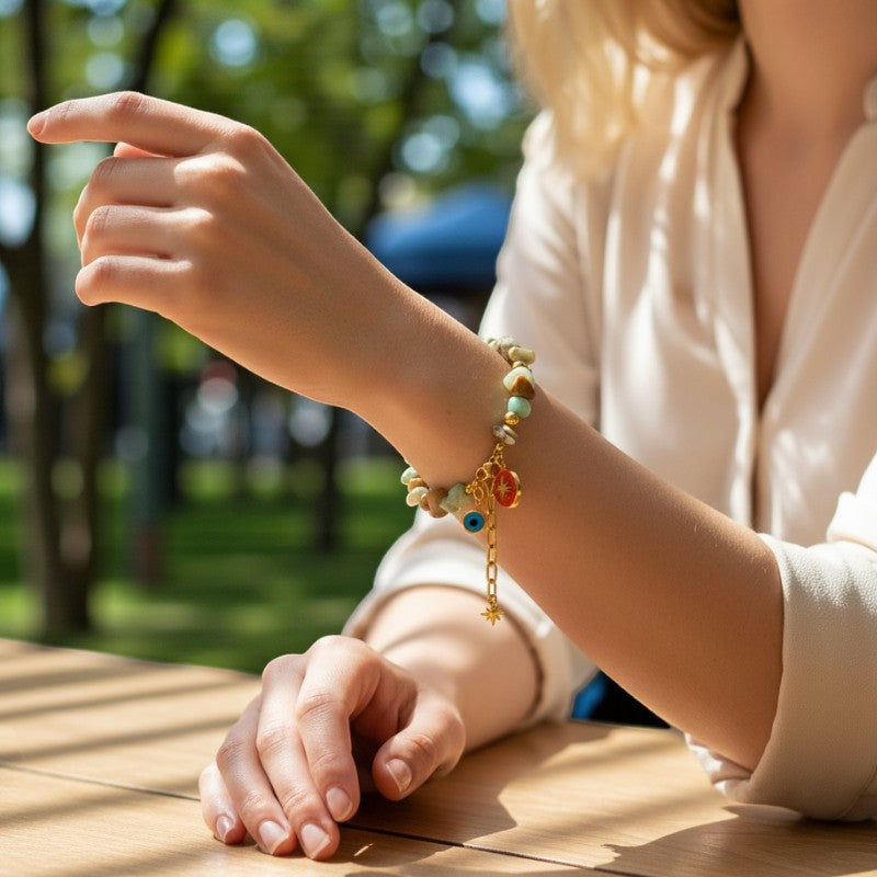 - π Twinkling Natural Charm β The Twinkle Star Chips Bracelet features radiant Indian Agate chips that shimmer with earthy elegance.