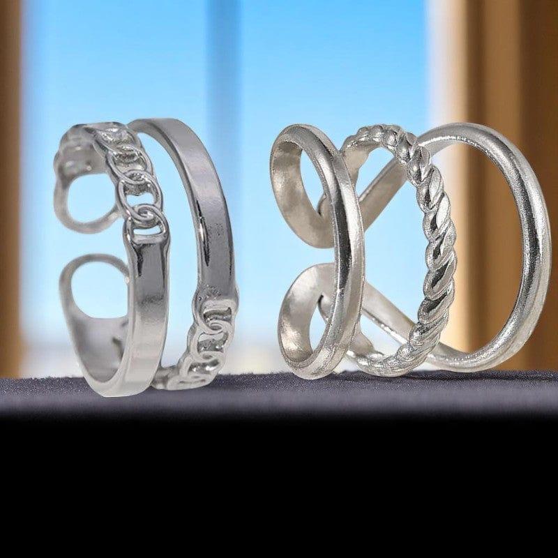 Elegant Duo Rings | PVD Silver Plated - For Women | Includes: Rings (Set of 2)