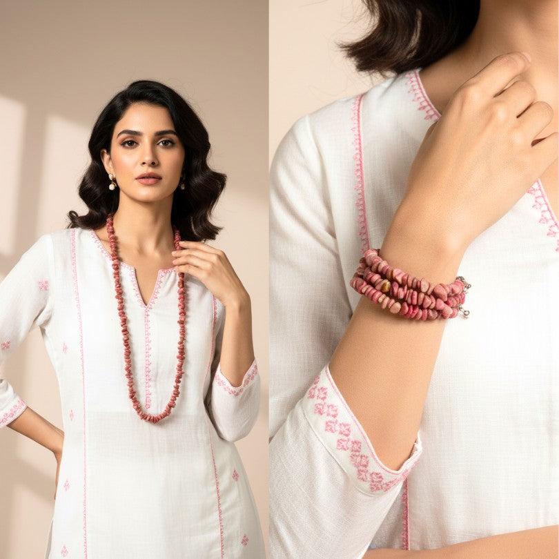 - Embrace the soft yet powerful energy of the Rhodonite Chips Necklace.