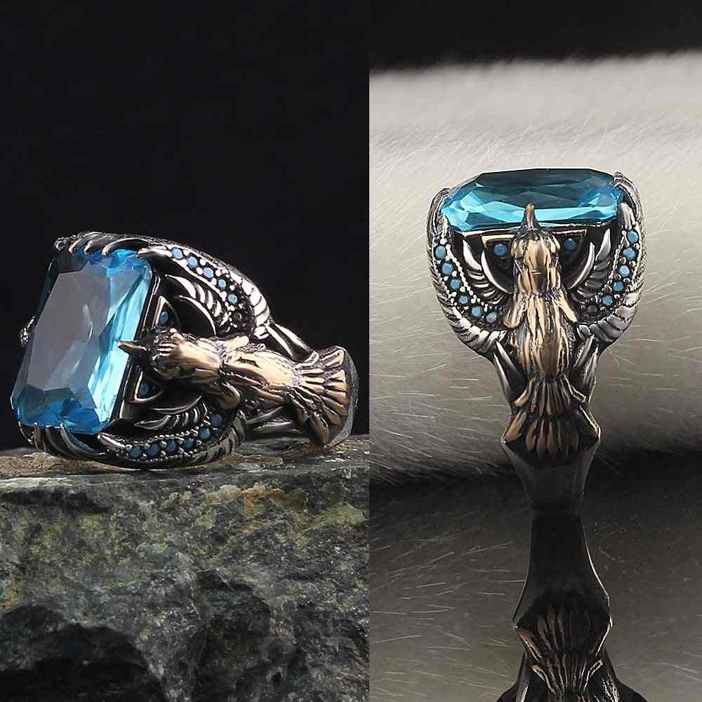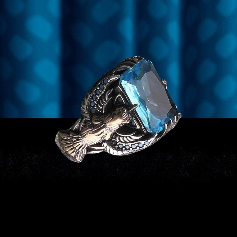 Eagle Design Wisdom Vintage Ring | Blue Zircon - For Men | Includes: Ring