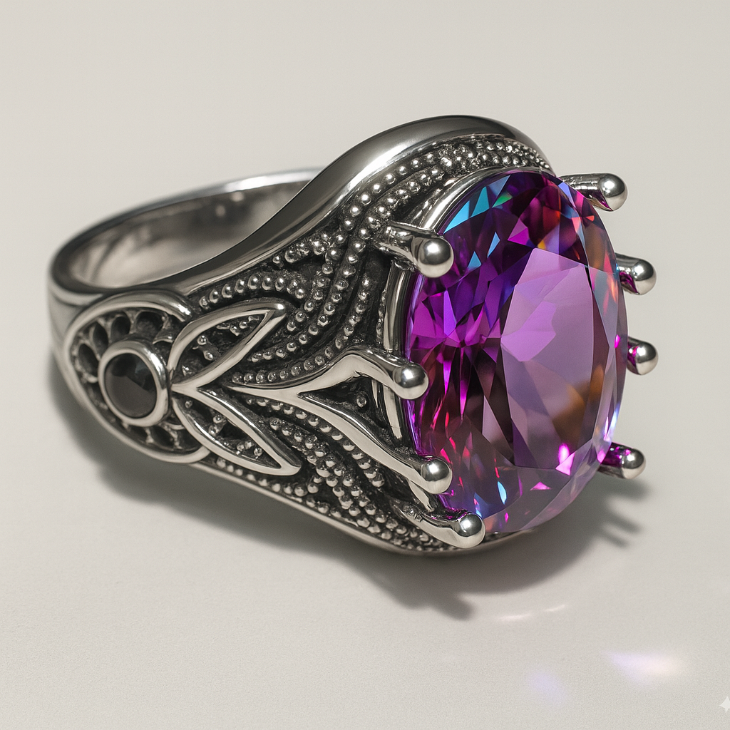 - Bold vintage-style ring with a durable and elegant PVD plated finish Made from premium hypoallergenic metal – hypoallergenic, anti-tarnish, and waterproof Features a striking zircon stone at the center – adds a powerful, eye-catching touch Stylish and trendy design that blends classic and modern elements Crafted for men of all ages – a timeless piece that suits every generation Built for comfort and durability – perfect for daily wear or special occasions Makes a strong statement while maintaining refined elegance A standout fashion accessory for men, ideal for enhancing any outfit.