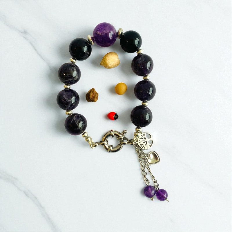 Vital Charm Bracelet | Black Obsidian & Amethyst - For Women | Includes: Bracelet